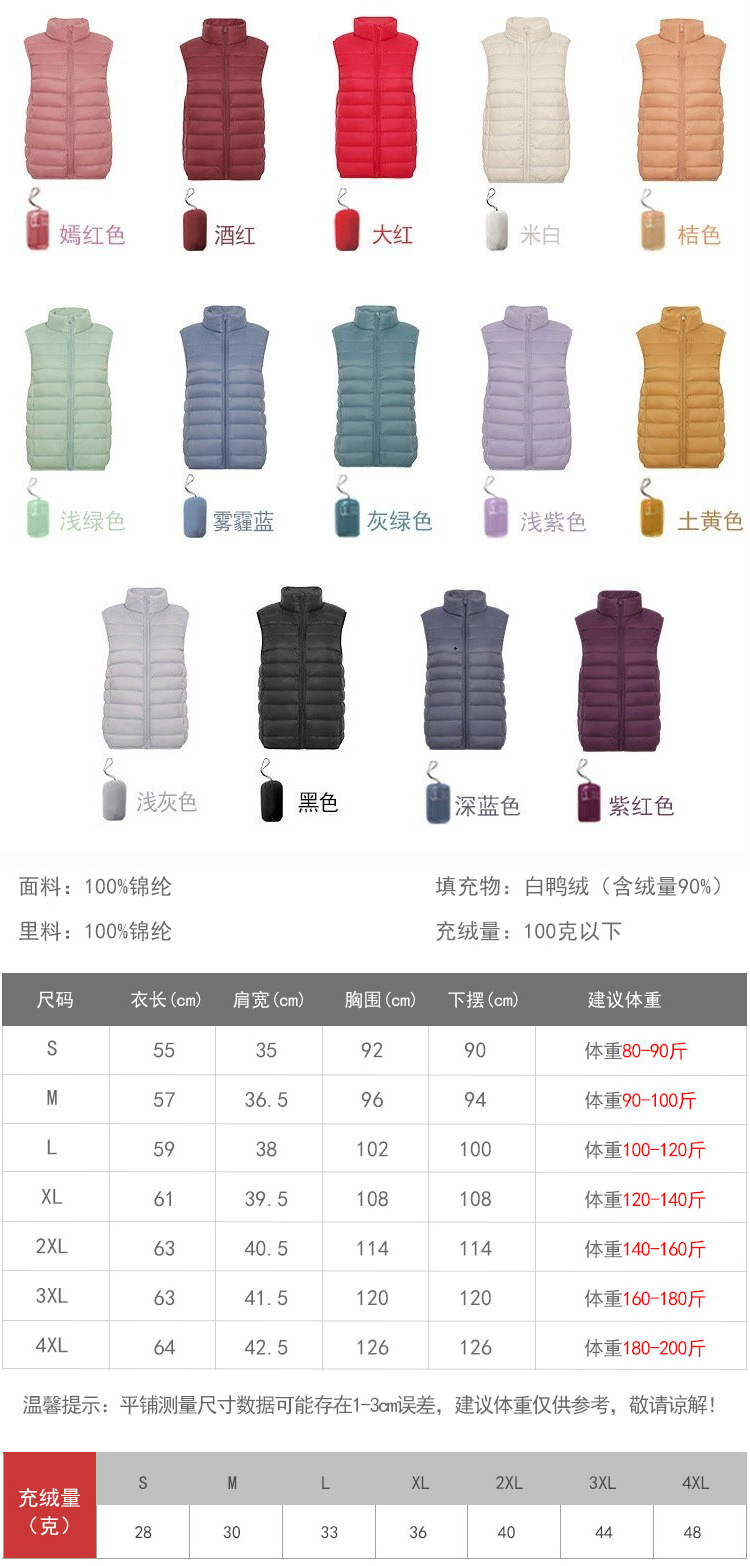 新款升级 轻薄女马甲, 使用优质90白鸭绒,