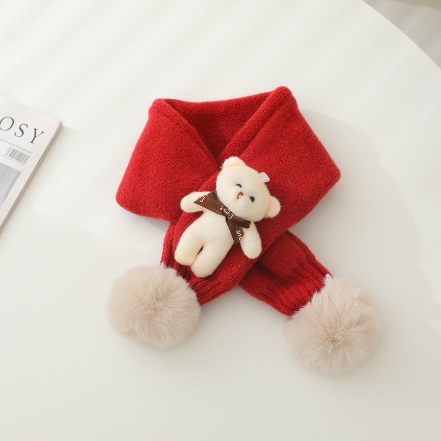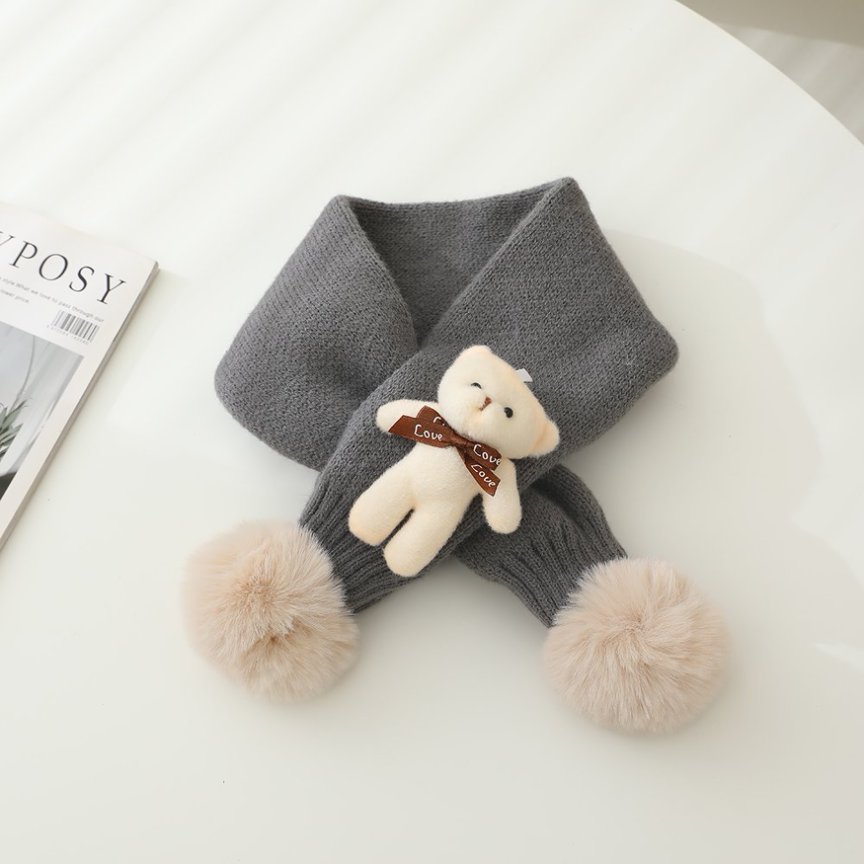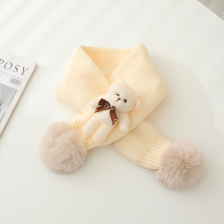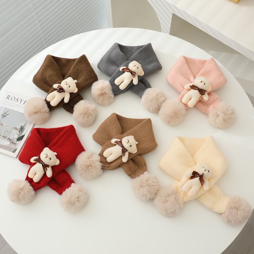 한국어 스타일 어린이 슈퍼 귀여운 공 니트 크로스 스카프 가을, 겨울 남성과 여성 아기 간단한 격자 무늬 어린이 양모 스카프
