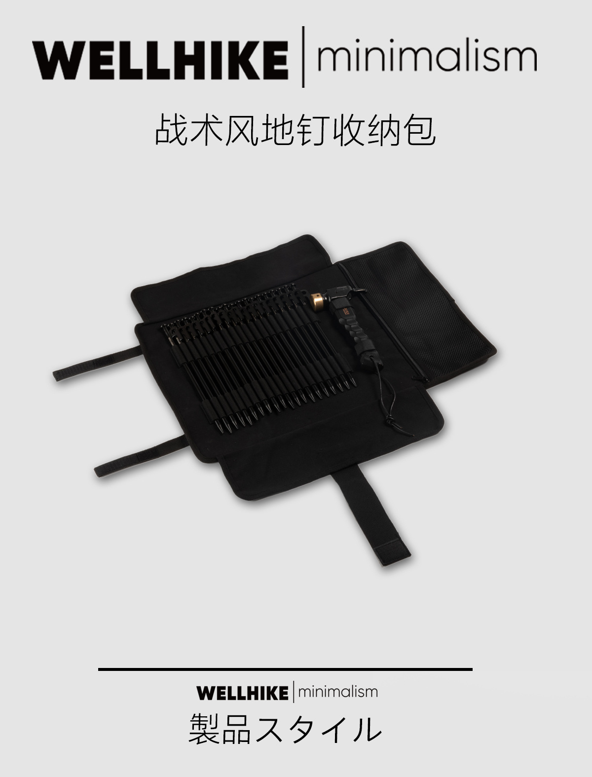 可容纳:地钉、风绳、风绳双眼扣、弹力扣、榉木铸锤 、急救口哨 、急救毯、荧光圈等其他户外用品