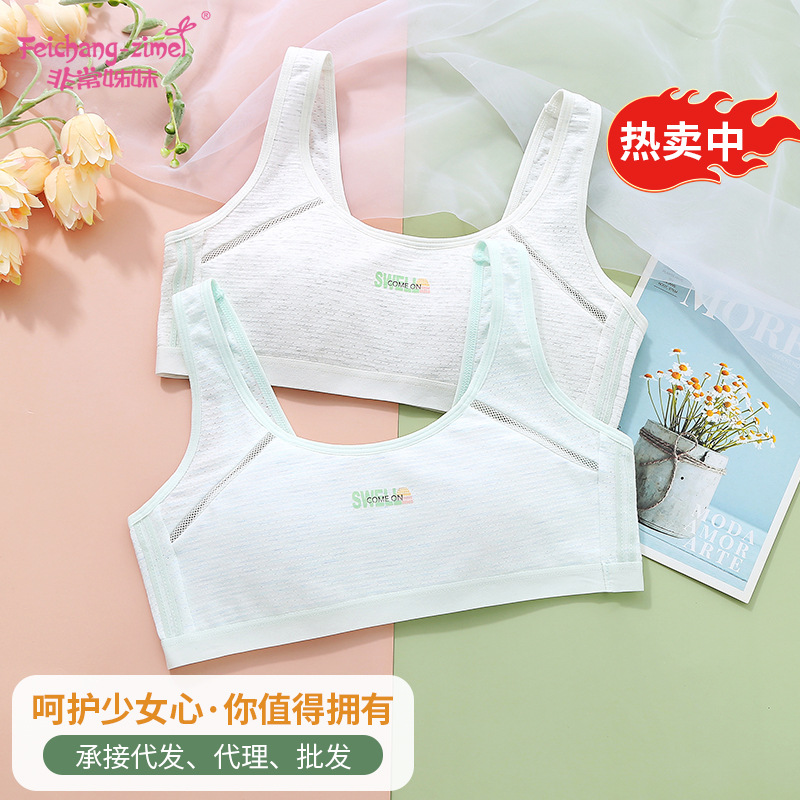 엄선된 여아 발달기 스포츠 브라, 초등학생 아동용 탑 브라, 신축성 통기성 메쉬 여아 속옷스토어 가기