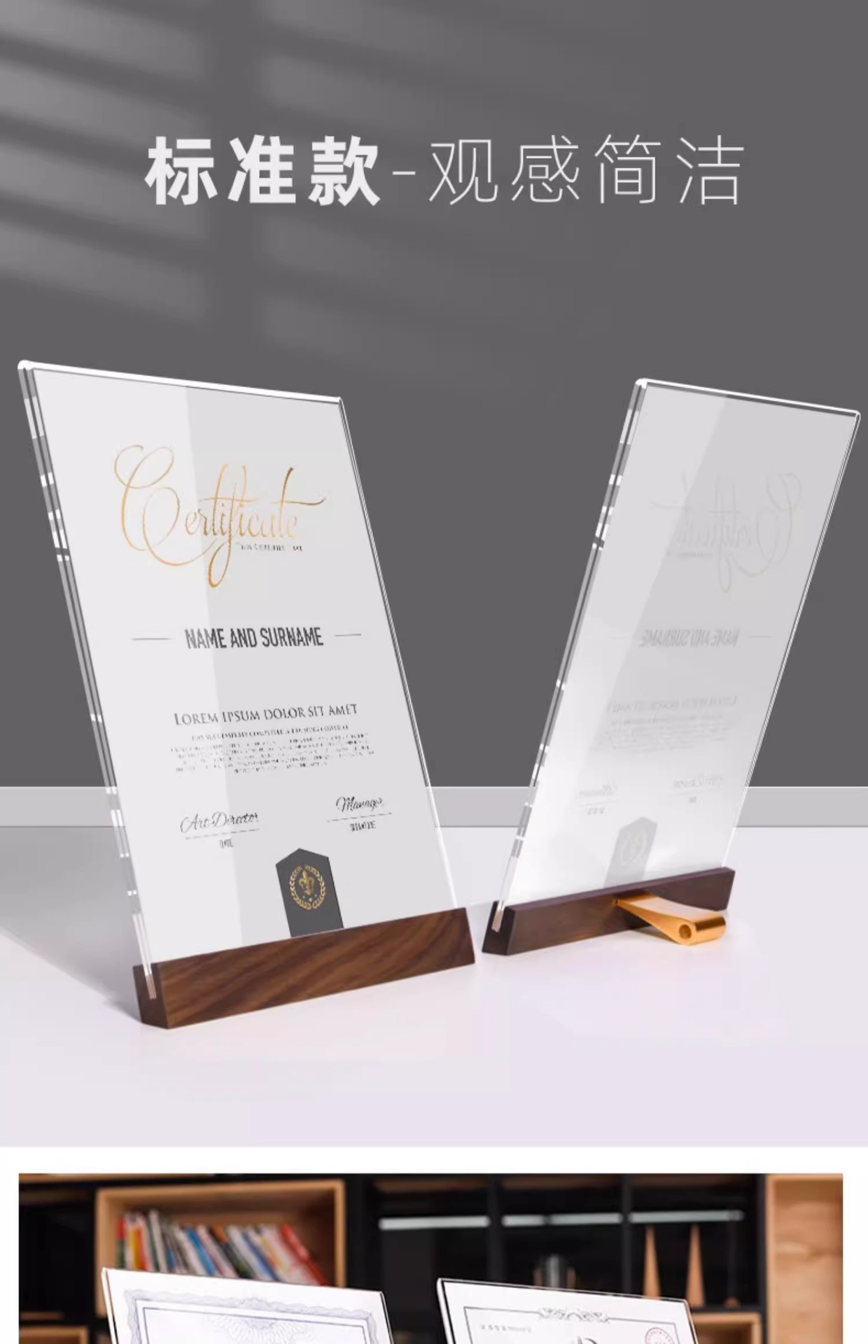 국경 a4 아크릴 인증서 카드 인증서 디스플레이 프레임 특허 승인 편지 유리 사진 프레임 테이블 명예 인증서 프레임