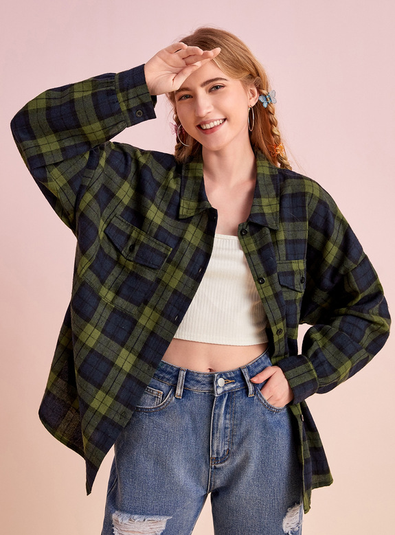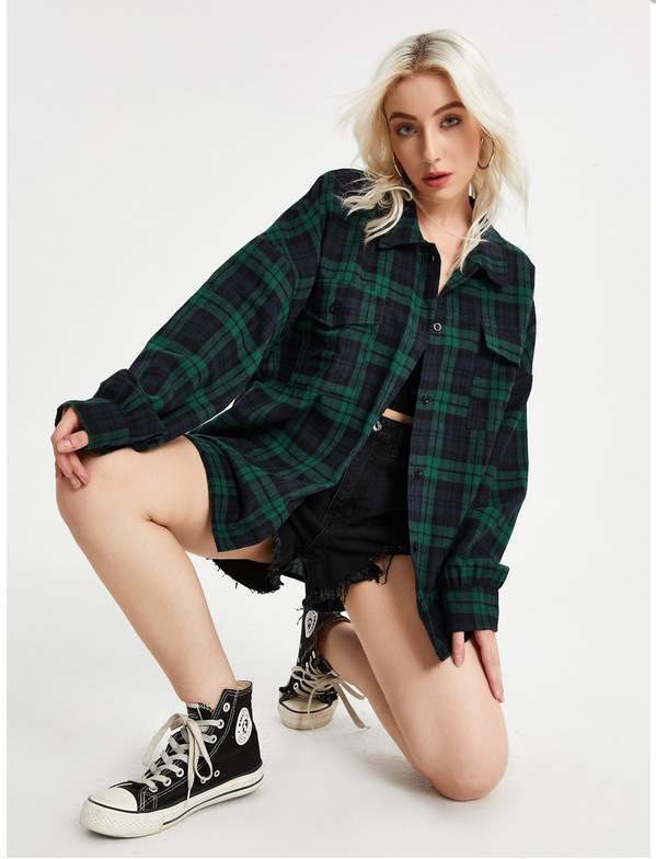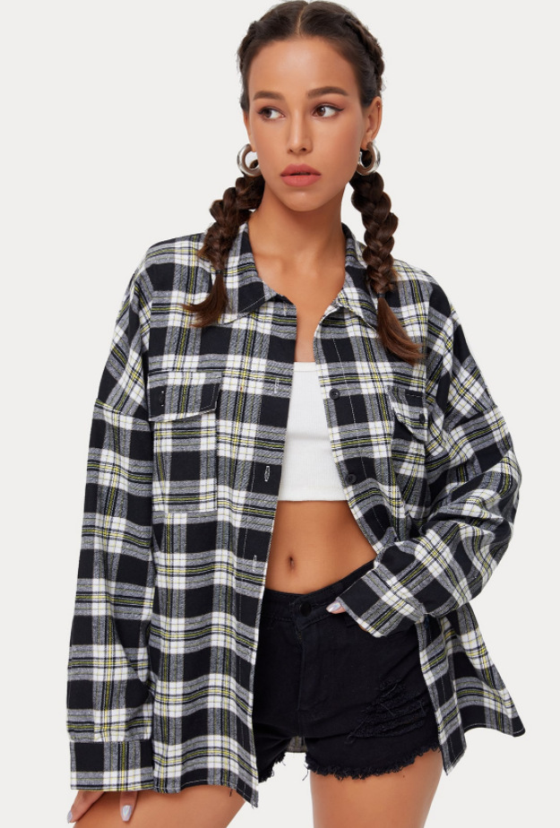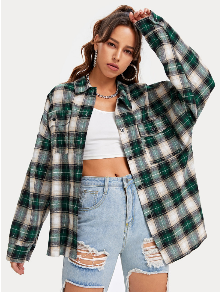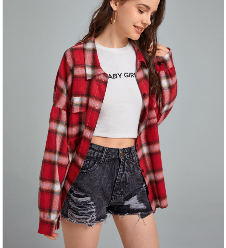 유럽과 미국 크로스 국경 가을 격자 무늬 싱글 브레스트 카디건 칼라 옷깃 긴 소매 기질 멀티 컬러 셔츠 (재고)