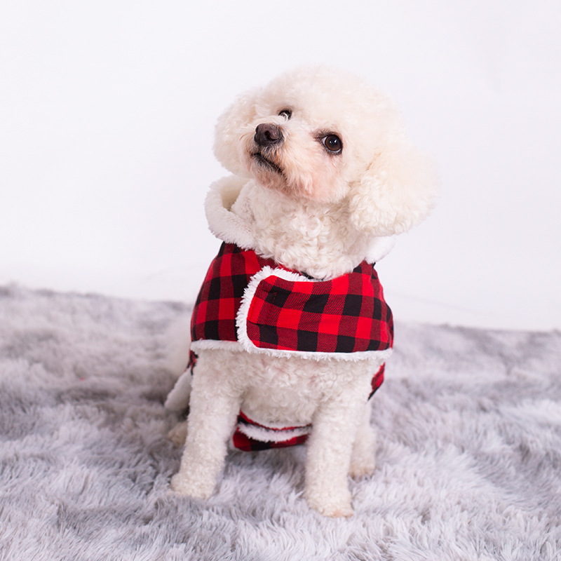 신상 체크무늬 강아지 후드 망토 겨울 방한복 내부 양털 강아지 의류 소형 중형견용스토어 가기