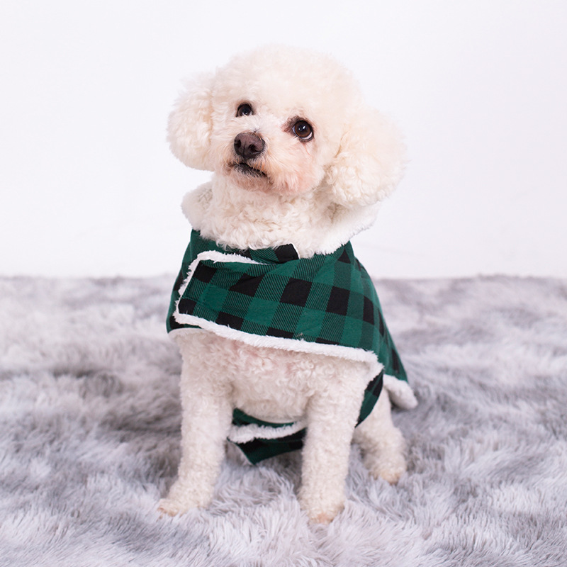 신상 체크무늬 강아지 후드 망토 겨울 방한복 내부 양털 강아지 의류 소형 중형견용