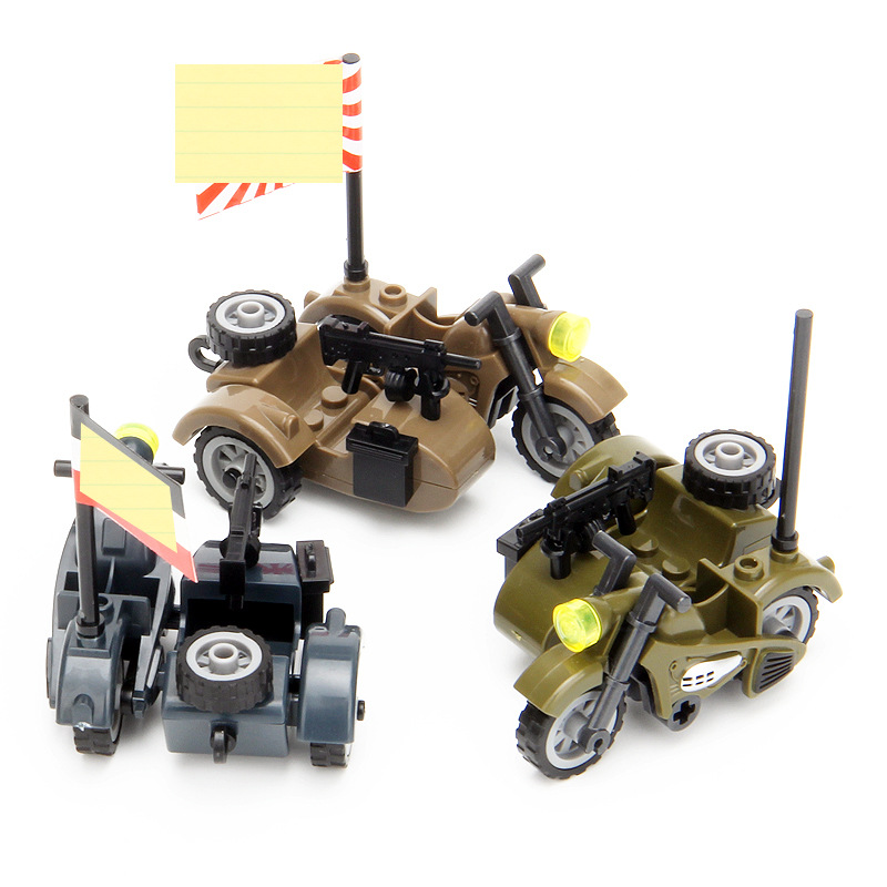 대외 무역 제 2 차 세계 대전 빌딩 블록 남자 액세서리 조립 3 륜 오토바이 군용 차량 어린이 장난감스토어 가기