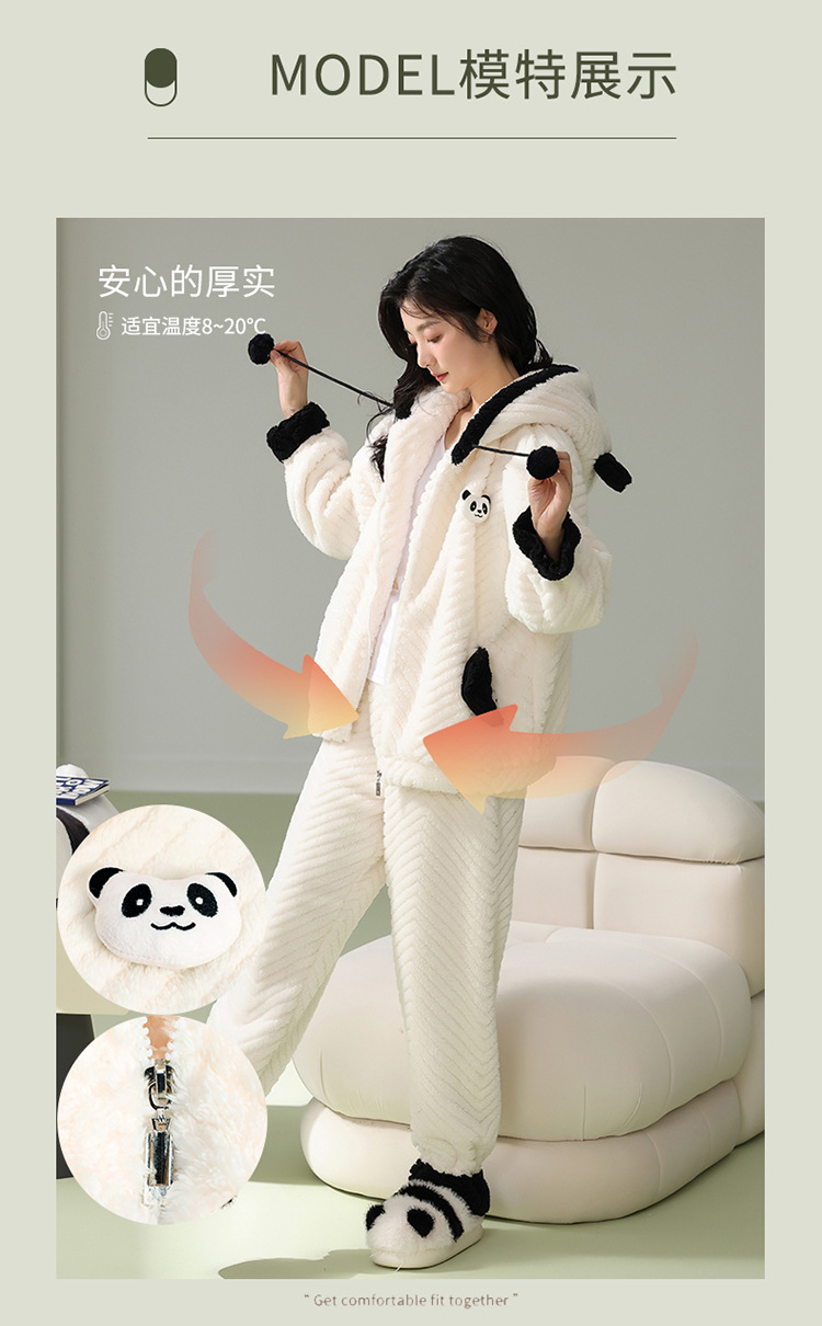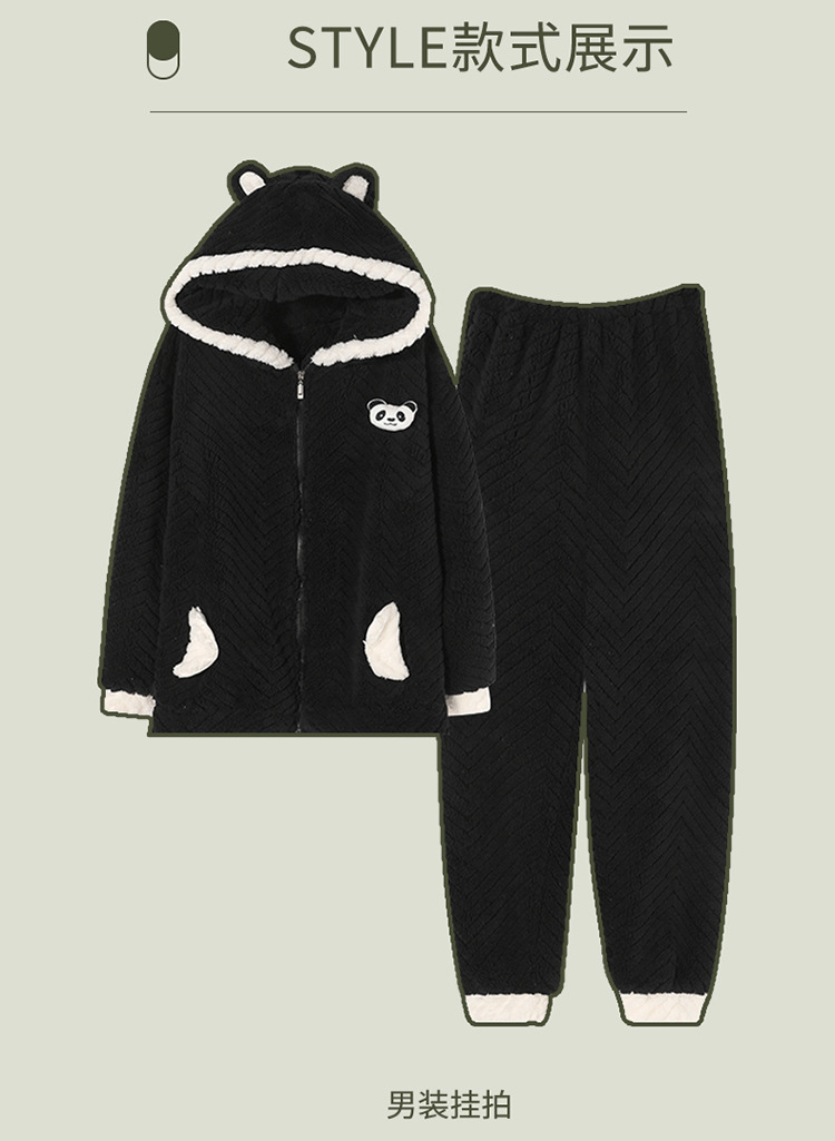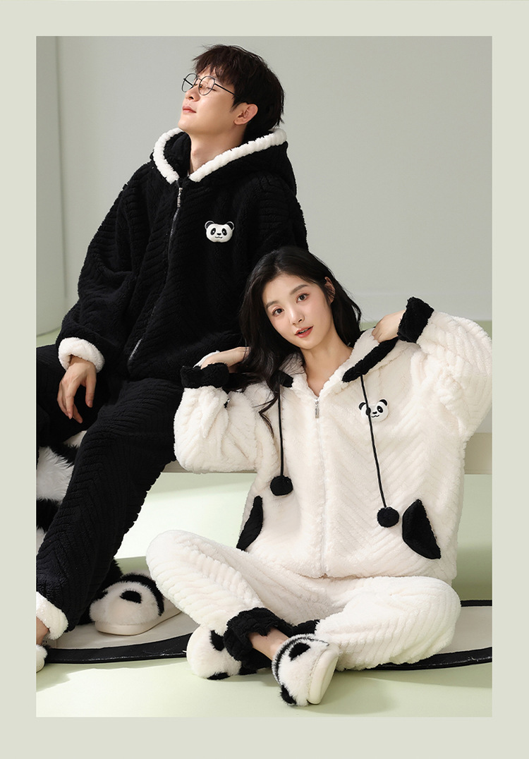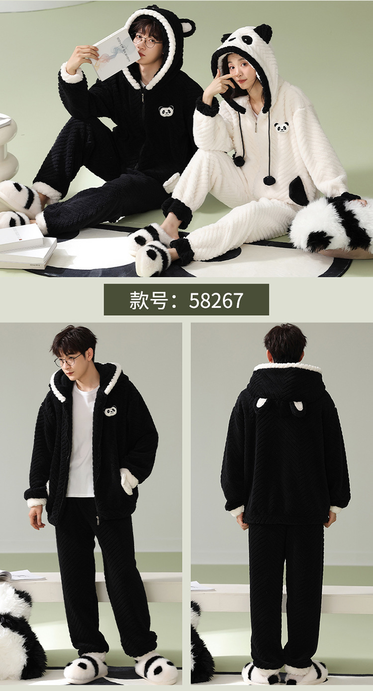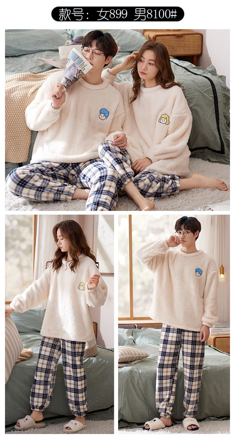 춘 바이펜 커플 잠옷 가을과 겨울 산호 양털 남성과 여성의 두꺼운 기모 플란넬 후드 겨울스토어 가기