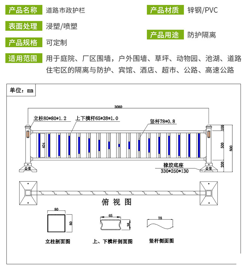 도시 난간 도시 고속도로 교통 안전 보호 격리 시설 보도 충돌 방지 아연 도금 강철 도로 난간