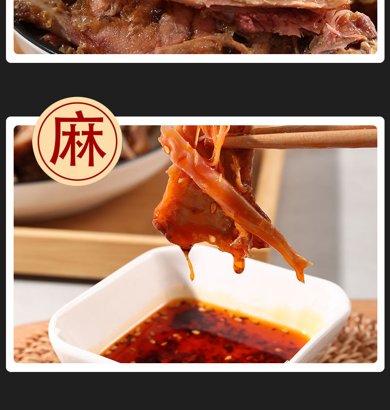 공장 도매 Dezhou 매운 참기름 닭고기 손으로 찢어진 참깨 고추 닭 양념 닭 진공 요리 산동 당나귀-가죽 젤라틴 로스트 치킨스토어 가기