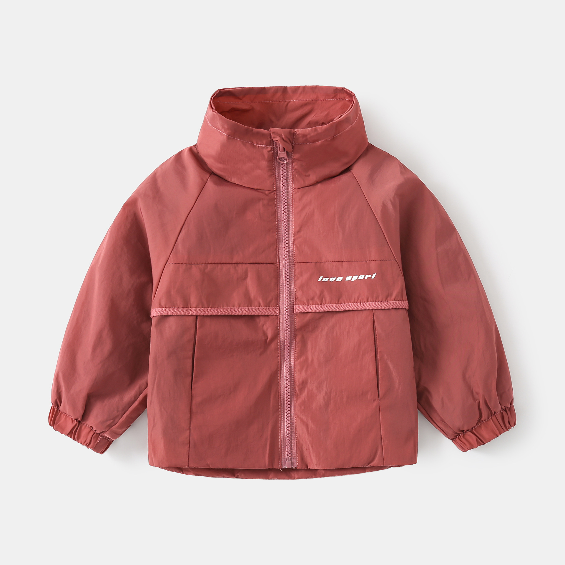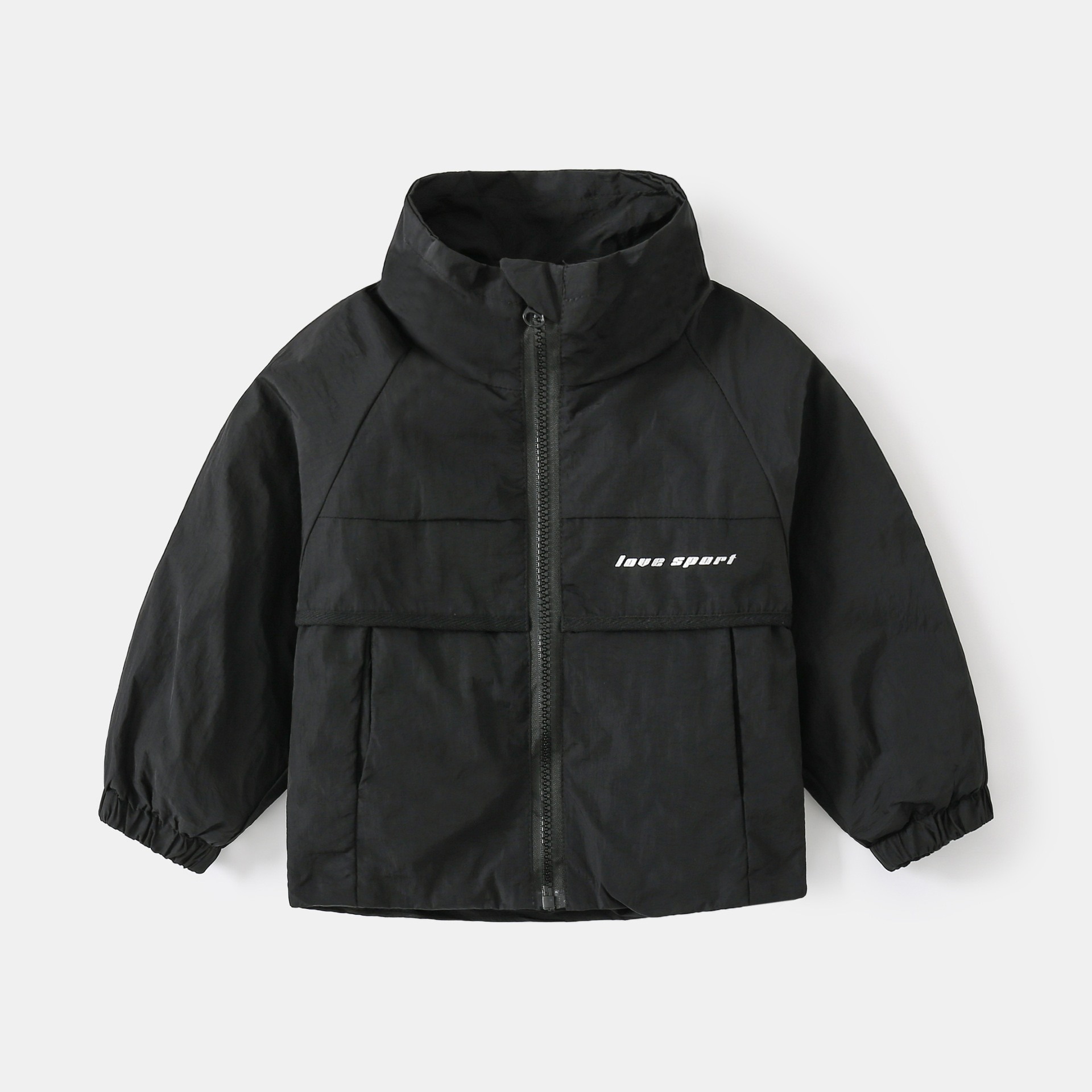 가을 2023 지퍼 스탠드 칼라 코트 패션 캐주얼 스타일 아이들의 긴 소매 편지 인쇄 소년의 기모 재킷
