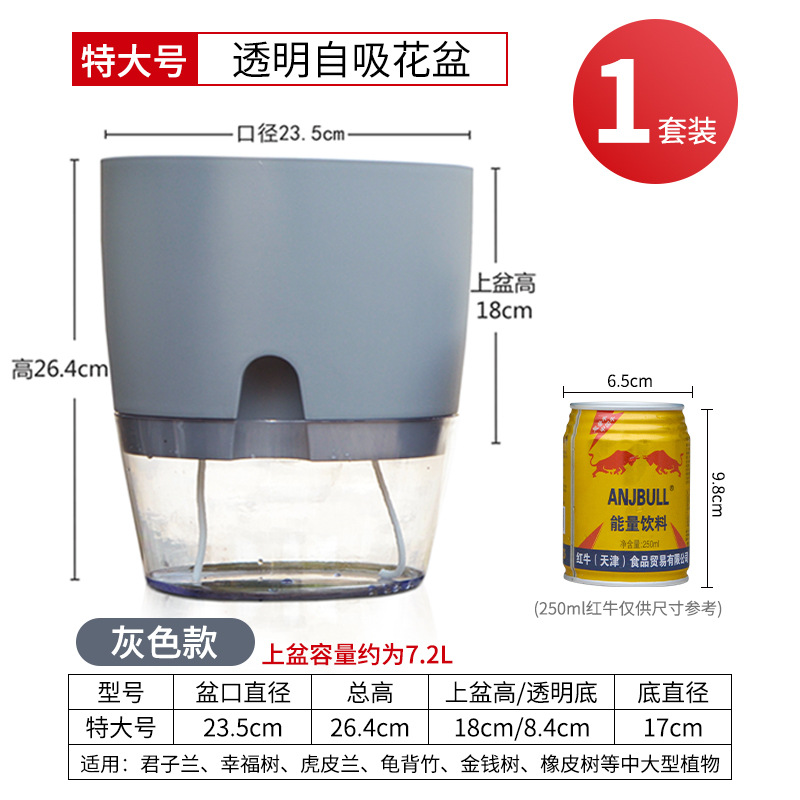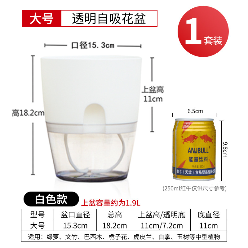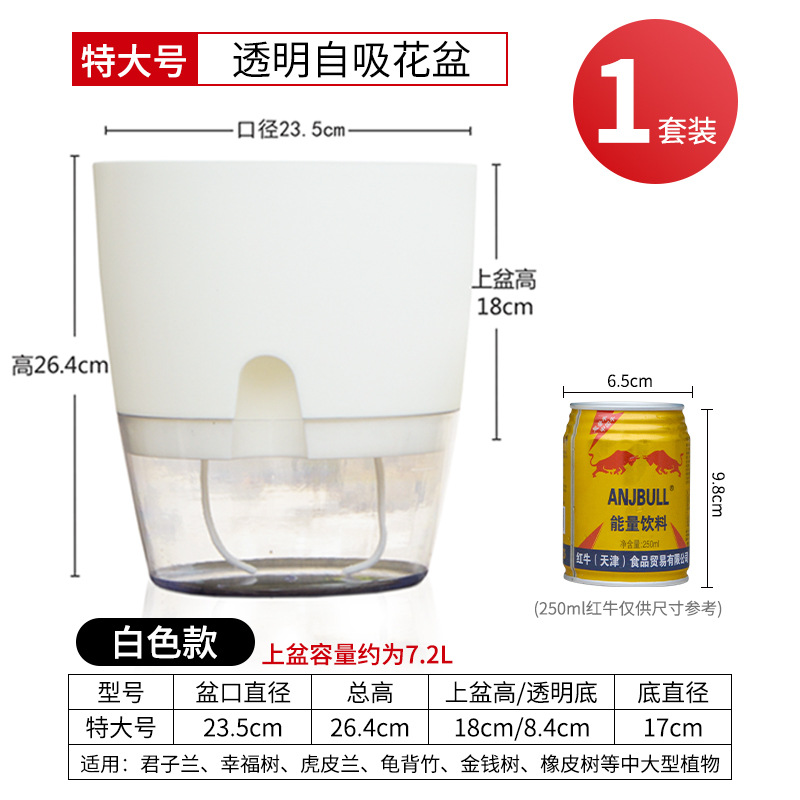 温馨提示:懒人花盆特大号的由于尺寸较大,透明底跟花盆安装的时候直接套平放即可,不用扣上去的,特大号不跟其他型号一样是可以套紧的,只需要平放上去就可以的,这个设计是方便加水换盆操作,不属于售后质量问题,亲看清楚下单哦,介意者慎拍的!