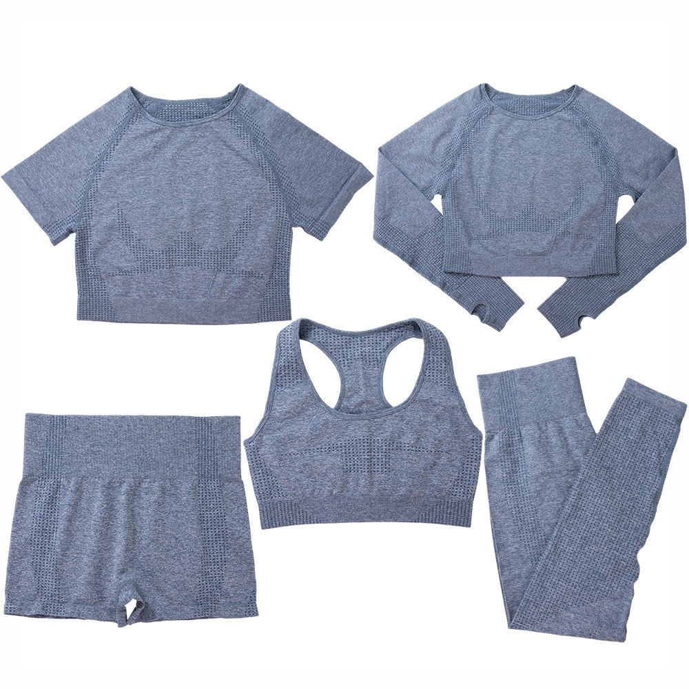 유럽과 미국 크로스 보더 원활한 요가 세트 세트 반팔 브래지어 스트레치 피트니스 바지 반바지 스포츠 도트 요가 세트