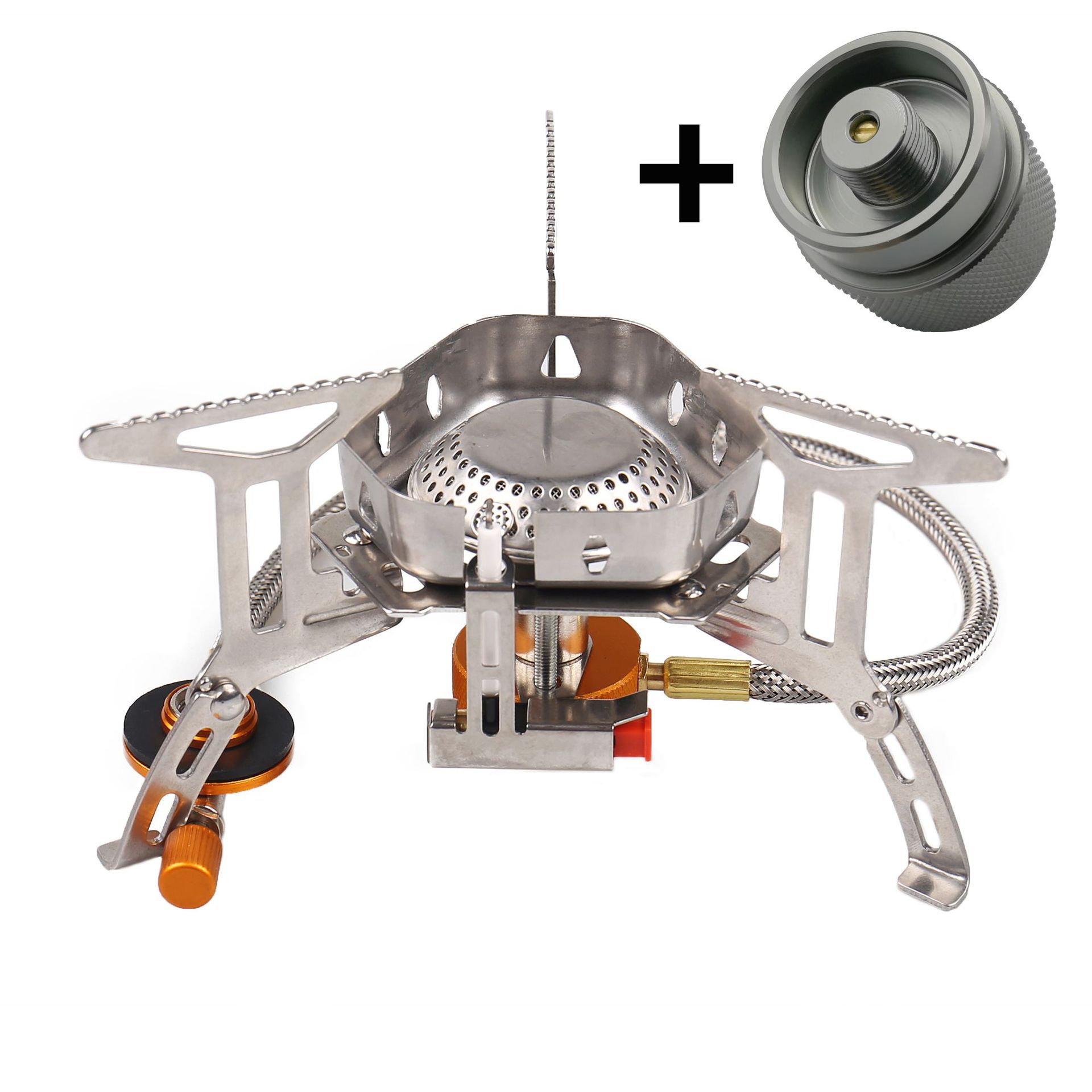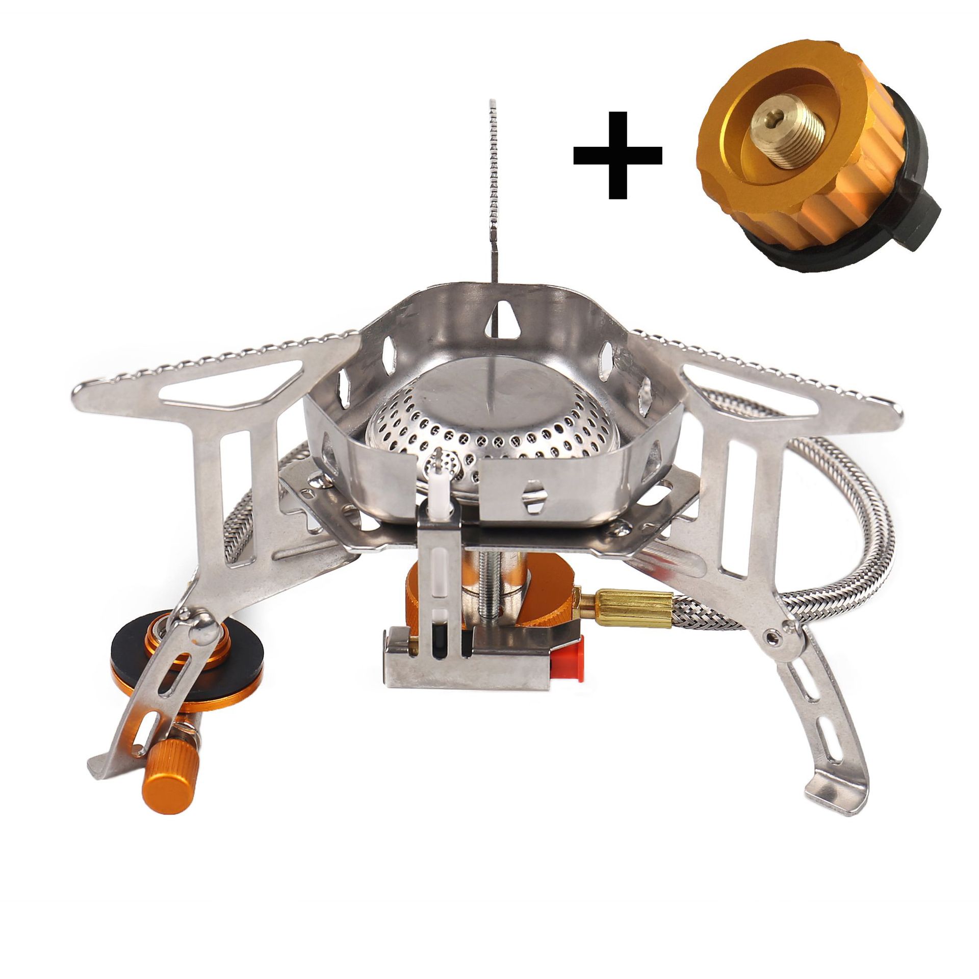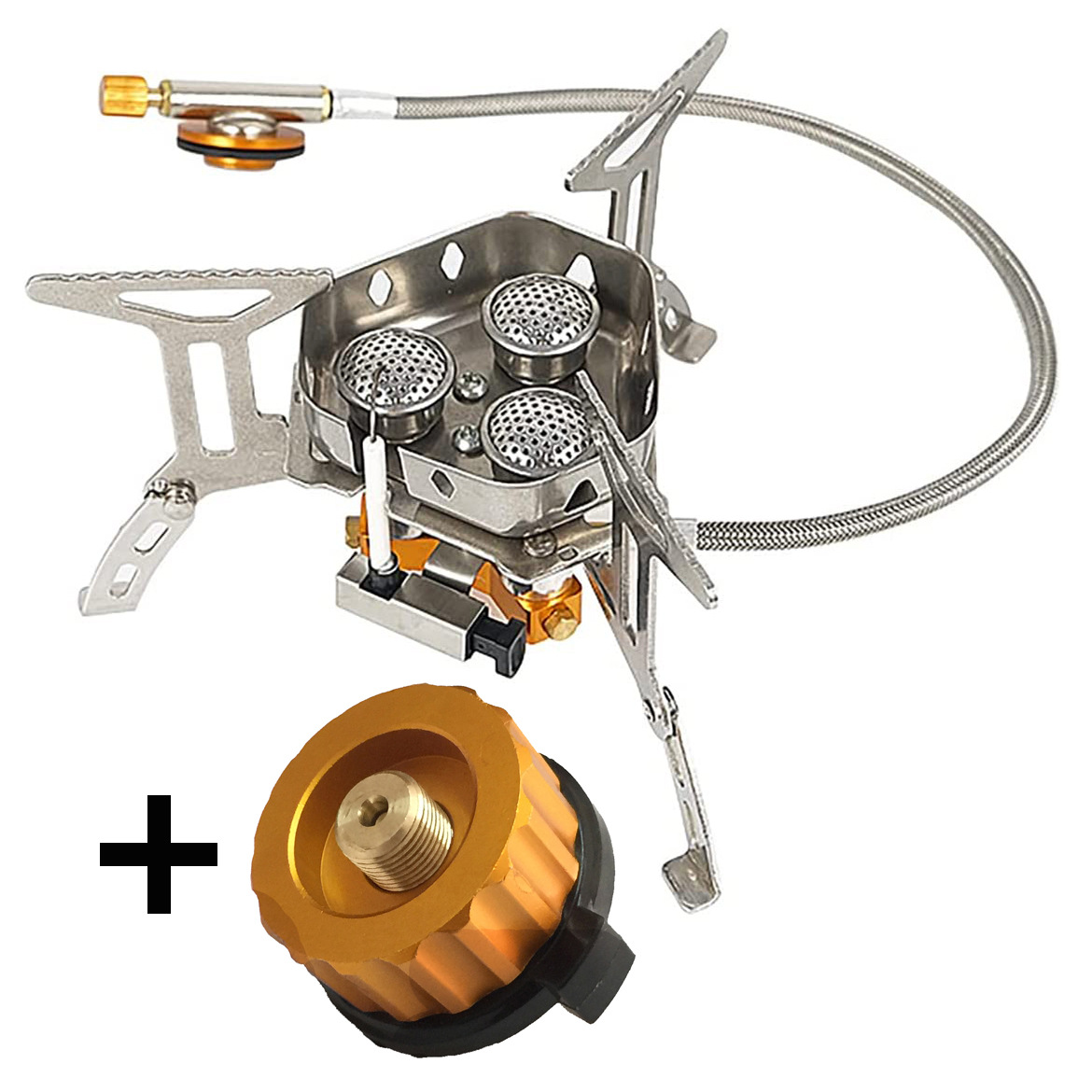 材质为不锈钢材质,承重力强。体积小,可折叠式支撑架,耐高温。高能量陶瓷压电打火系统,确保点火成功。三头设计,供热均匀,蜂窝火焰,聚火焰增加氧气流通提高燃烧使用率,通用性好,适合各类气罐。