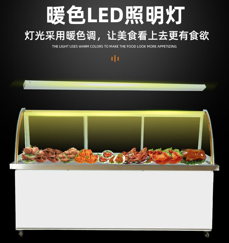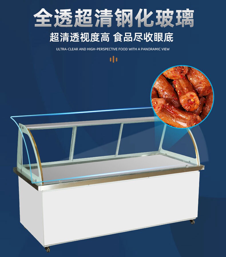 절인 고기 절인 델리 캐비닛 카운터 차가운 음료 문자열 향수 스톨 식품 오리 목 상업 슈퍼마켓 빵 보존 캐비닛