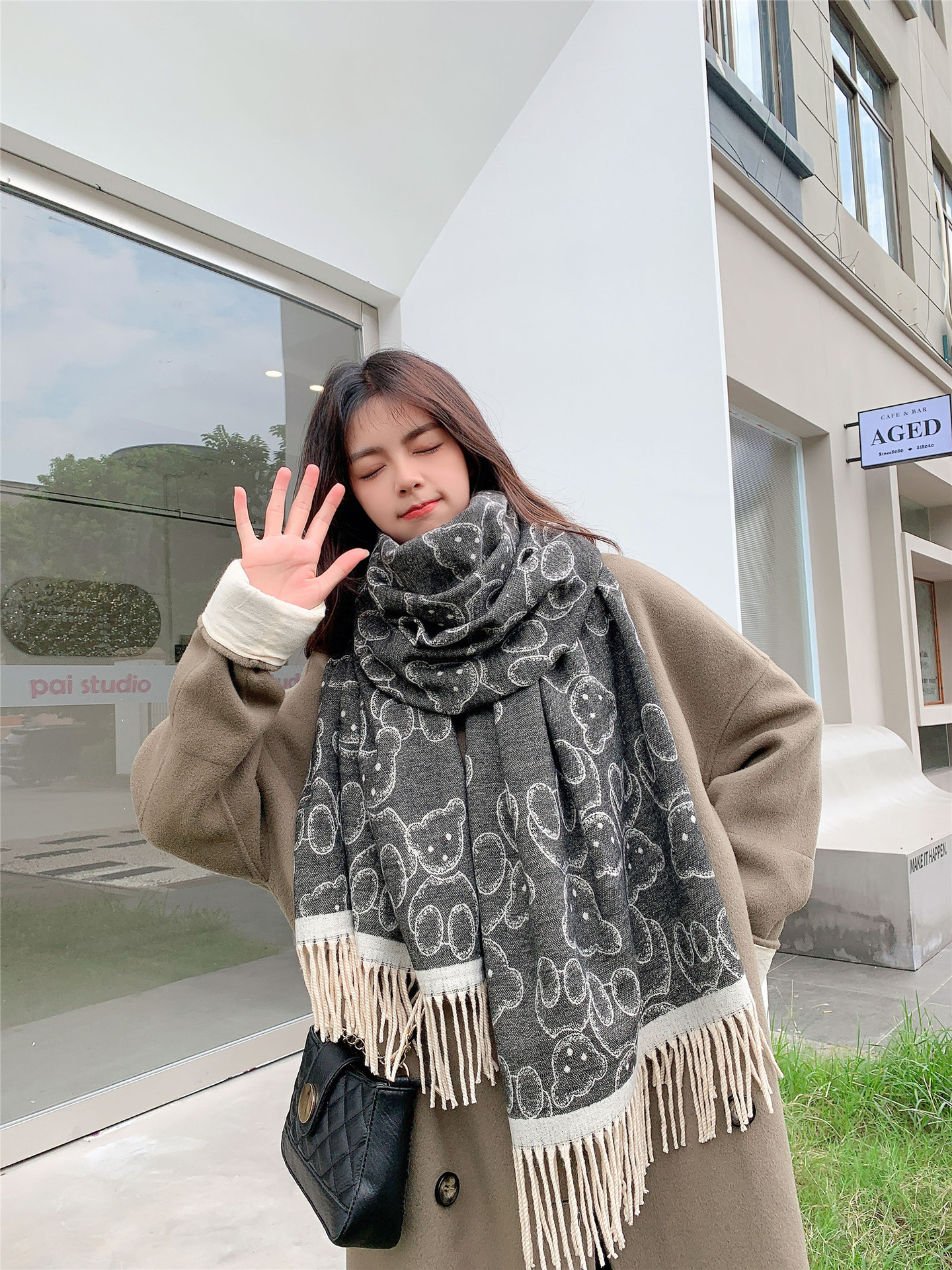 한국 in 곰 인쇄 귀여운 술 유행 스타일 B 스타일 복고풍 가을과 겨울 따뜻한 스카프 이중 사용 숄스토어 가기