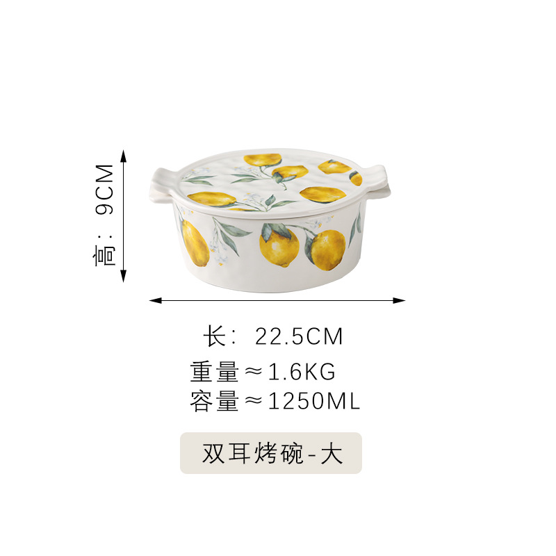 • 1250ml 레몬 베이킹 그릇(뚜껑 포함)
