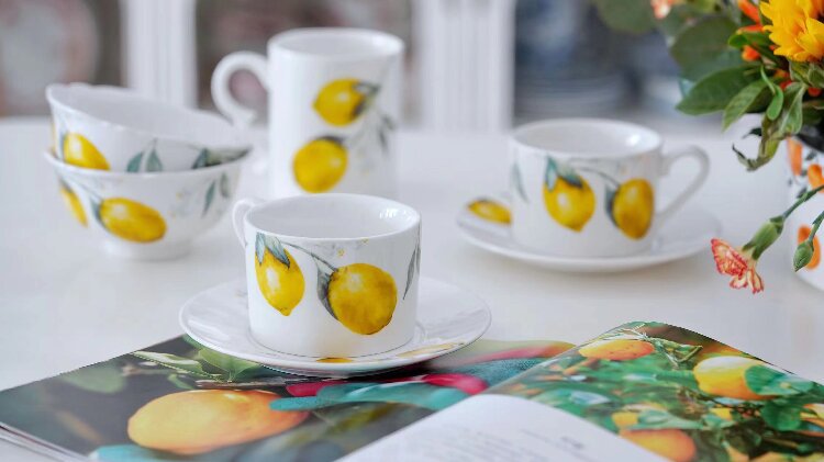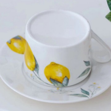 轻奢陶瓷杯北欧条纹杯碟礼品套装茶楼咖啡厅点心杯牛奶冲饮办公杯
