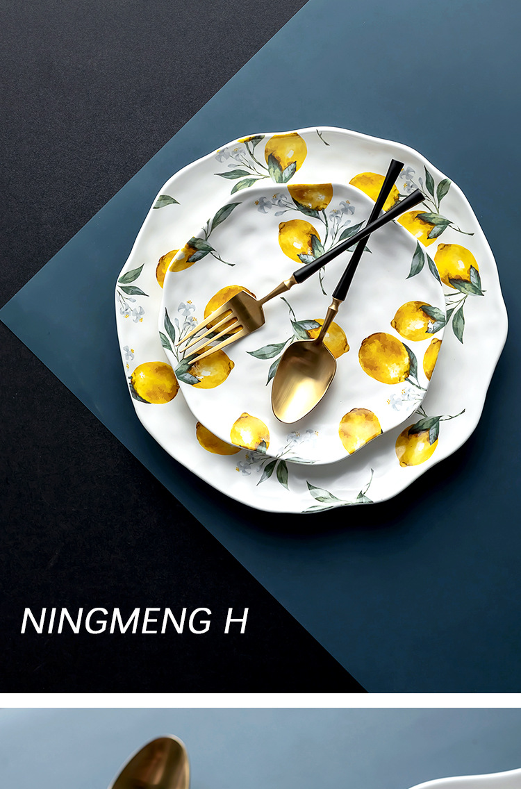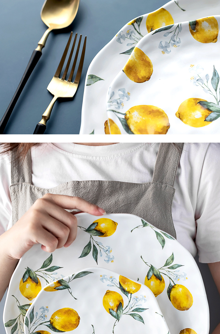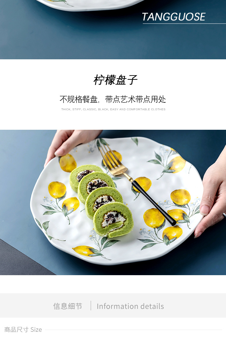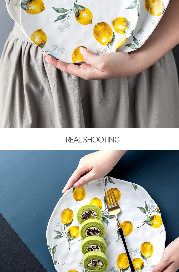 Ins 스타일 디너 플레이트 홈 세라믹 플레이트 라이트 럭셔리 레스토랑 서양 스테이크 플레이트 작은 신선한 레몬 케이크 플레이트 트레이