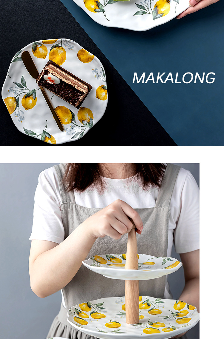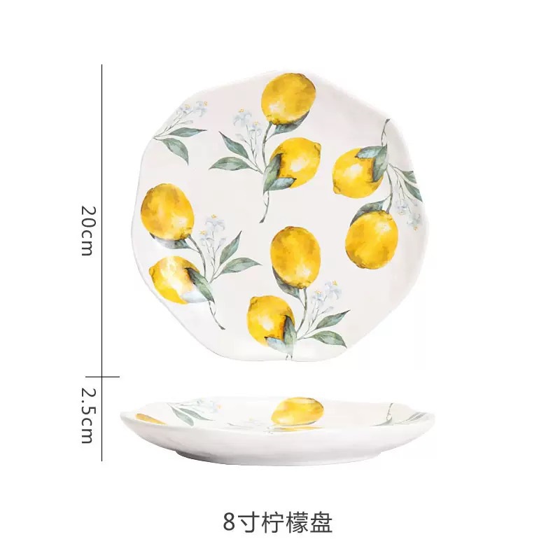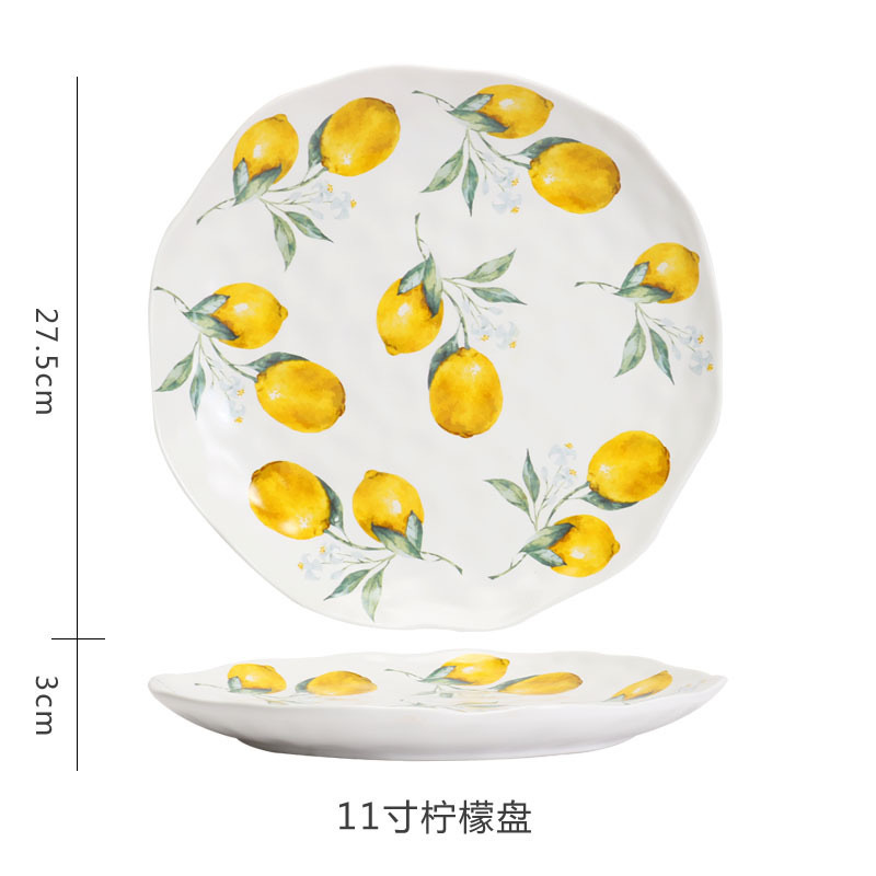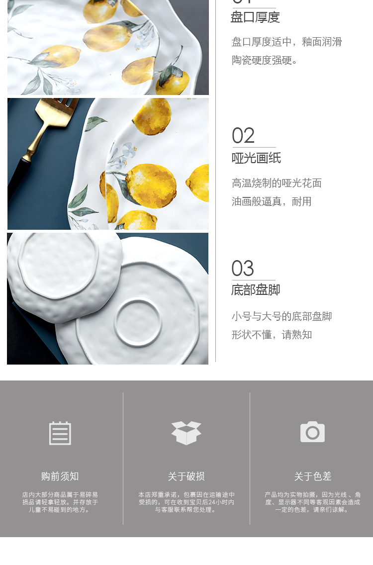 Ins 스타일 디너 플레이트 홈 세라믹 플레이트 라이트 럭셔리 레스토랑 서양 스테이크 플레이트 작은 신선한 레몬 케이크 플레이트 트레이