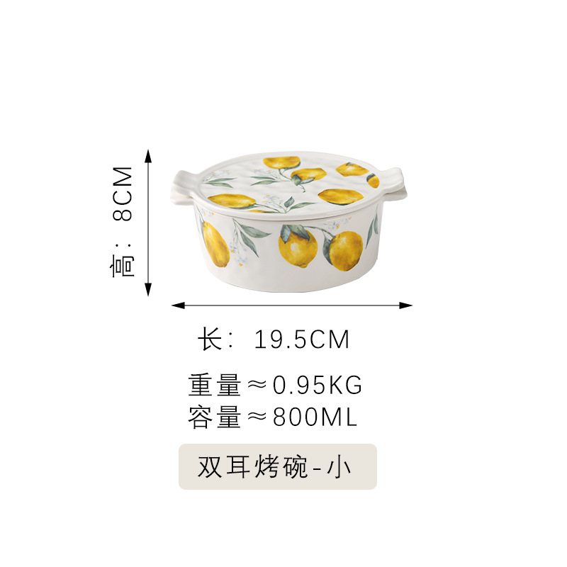 • 800ml 레몬 베이킹 그릇(뚜껑 포함)