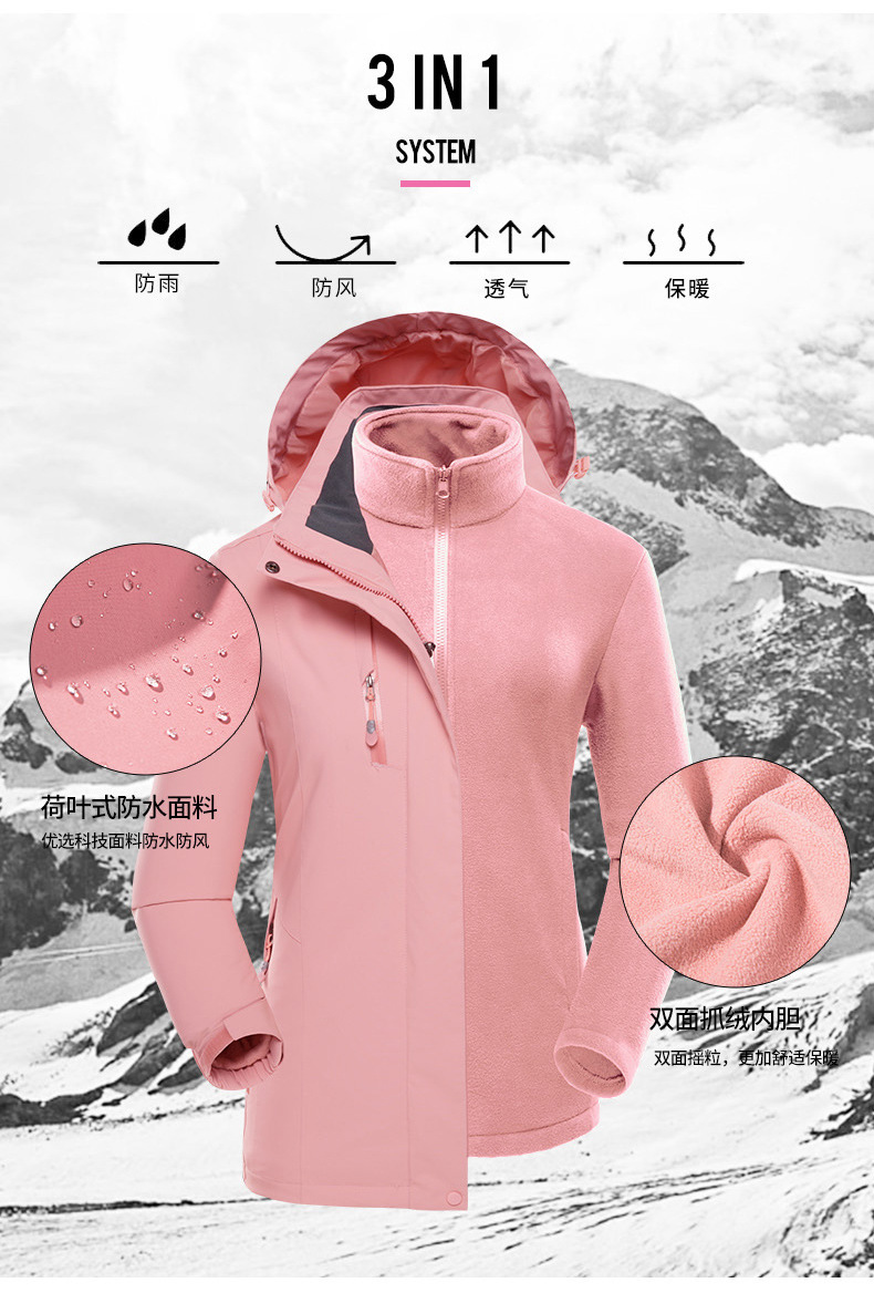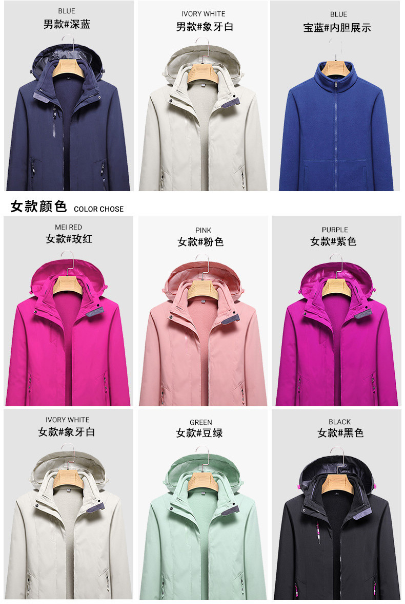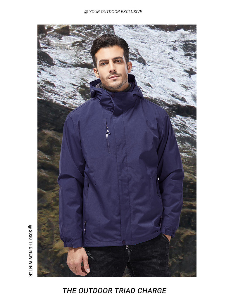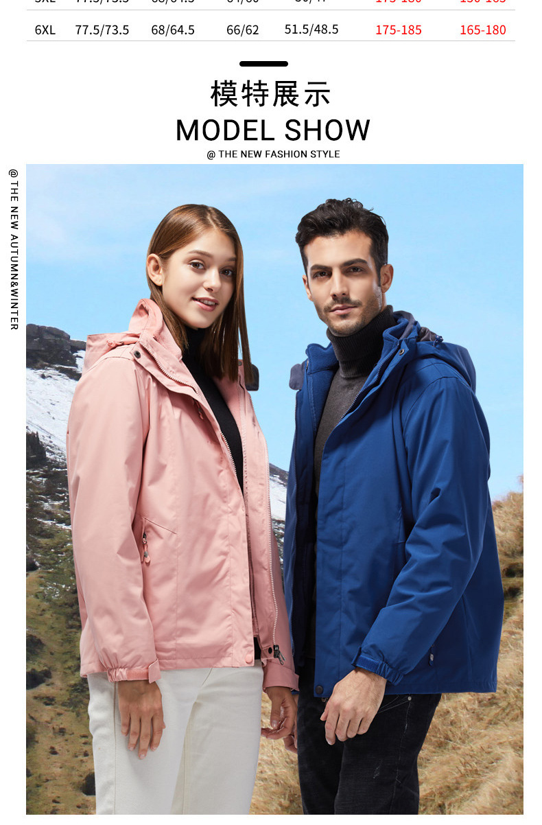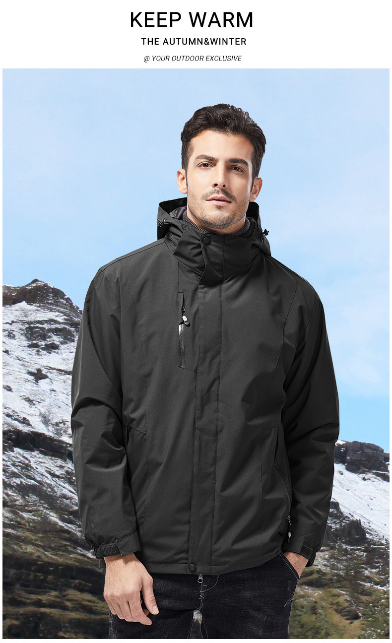 남성용 아웃도어 재킷 대형 사이즈 3-in-1 0.05kg 피스 세트 여성용 플리스 안감 두꺼운 순수 블랙 티베트 여행 등산복스토어 가기