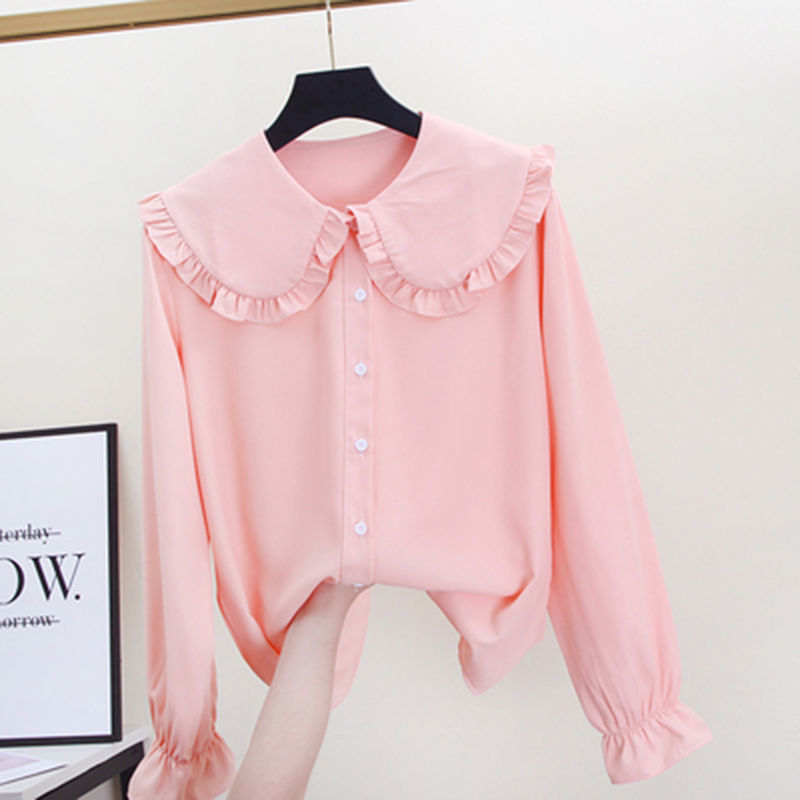 여아 가을 2021 새로운 스타일 유행 중간 및 큰 아이 여아 셔츠 봄과 가을 흰색 셔츠 쉬폰 어린이 긴 소매스토어 가기