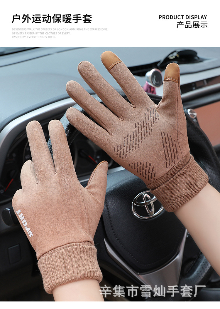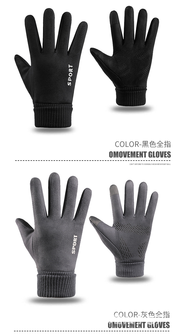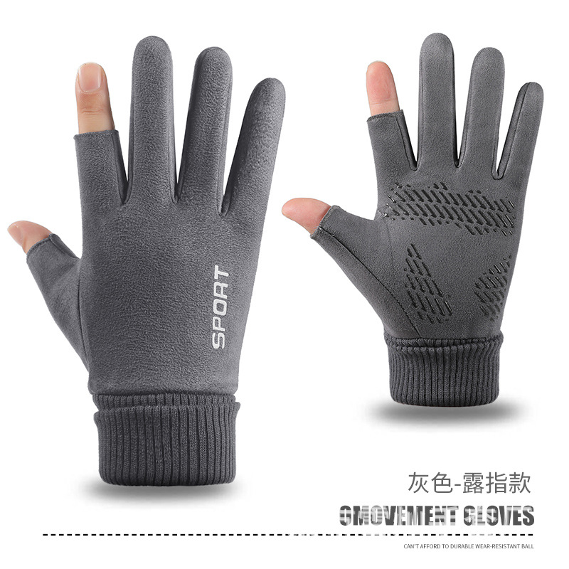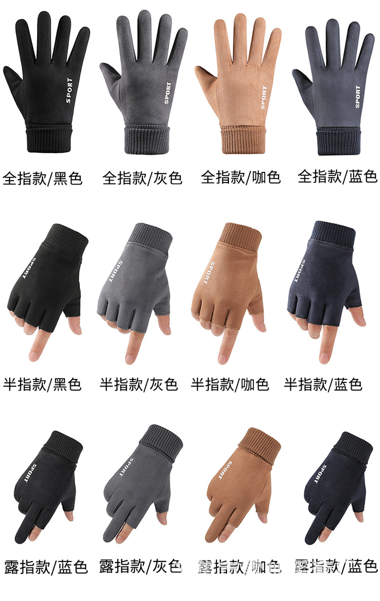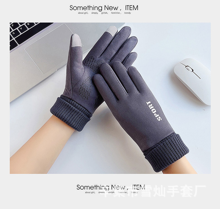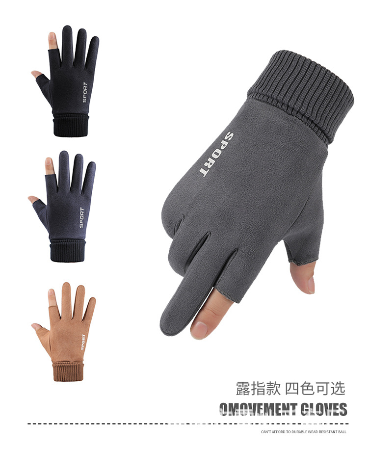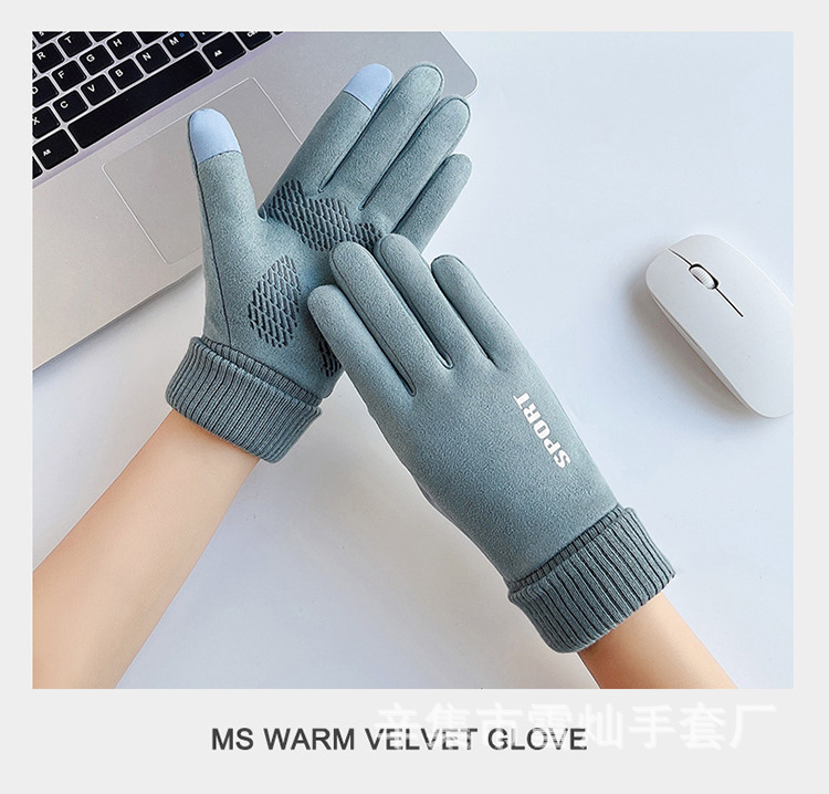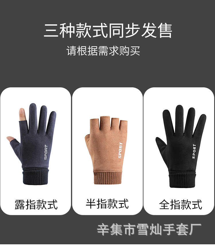 가을과 겨울에 따뜻한 터치 스크린 야외 사이클링을위한 남성과 여성을위한 스웨이드 벨벳 커프 커플 두 손가락 플러스 벨벳 두꺼운 장갑스토어 가기