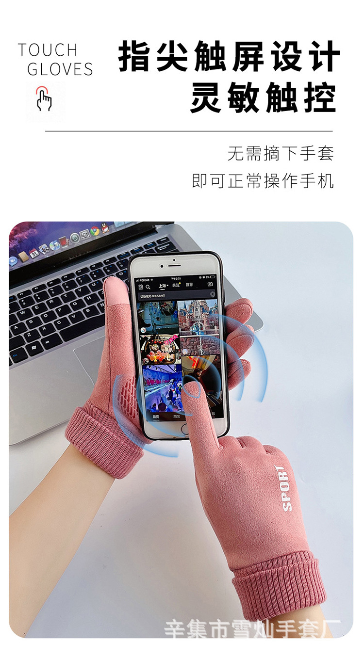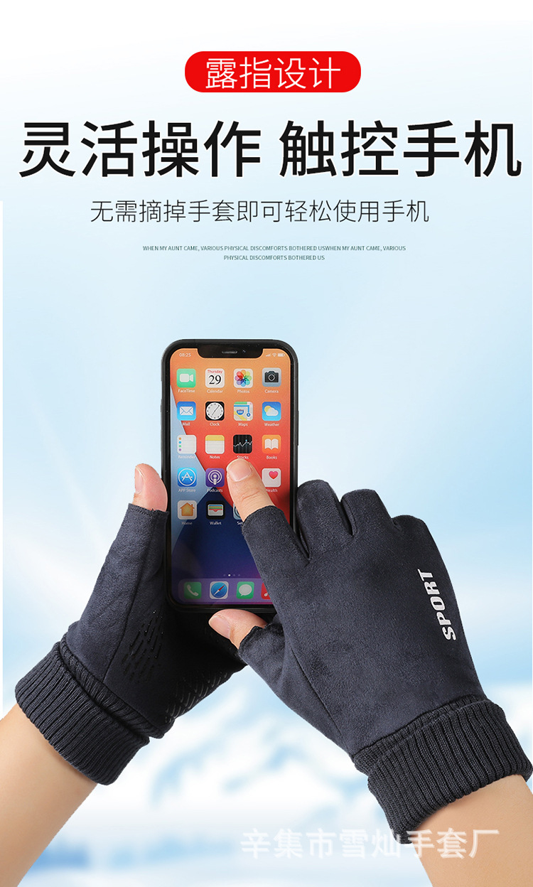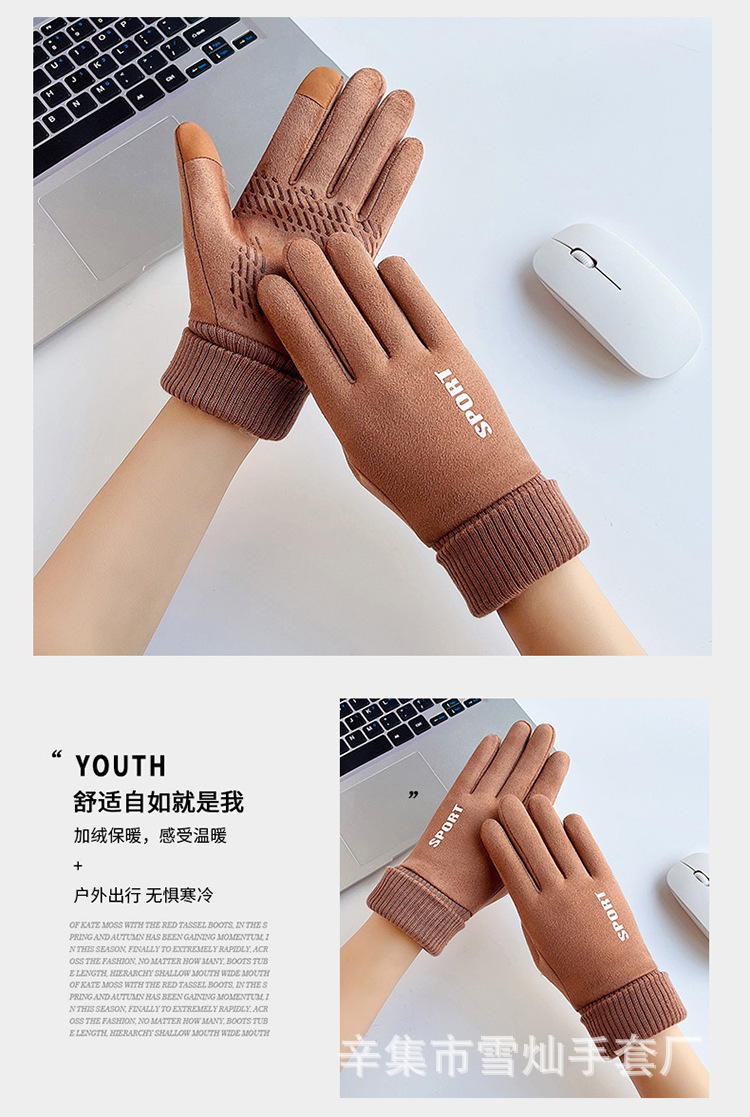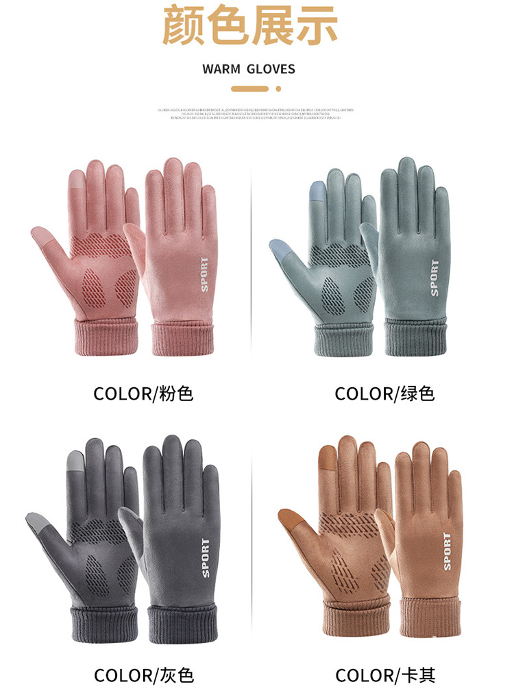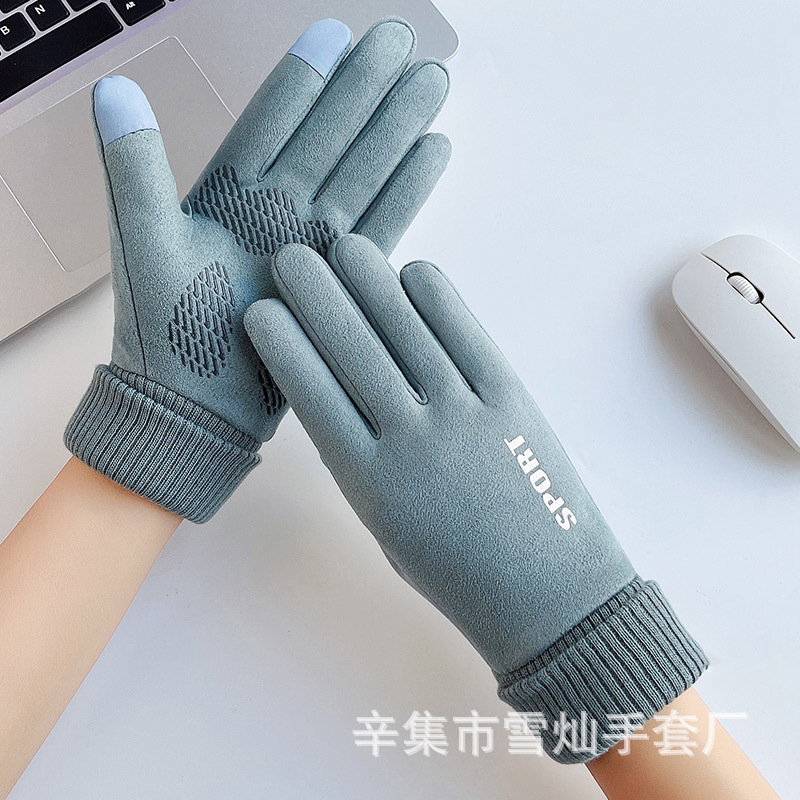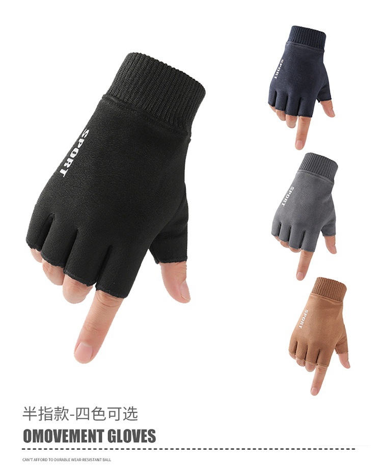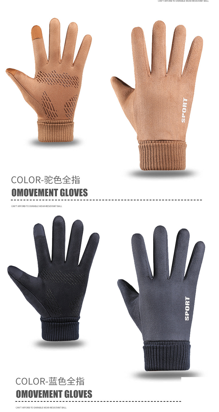 가을과 겨울에 따뜻한 터치 스크린 야외 사이클링을위한 남성과 여성을위한 스웨이드 벨벳 커프 커플 두 손가락 플러스 벨벳 두꺼운 장갑스토어 가기