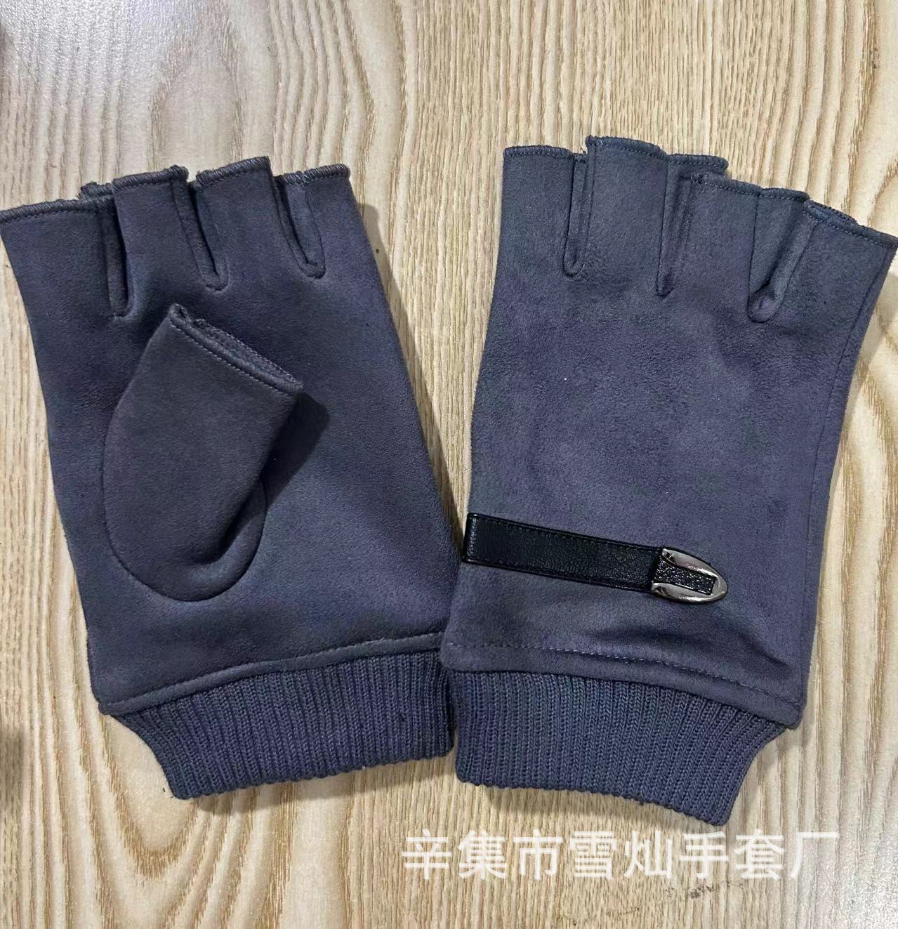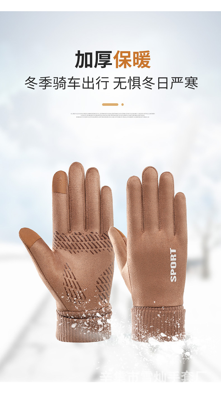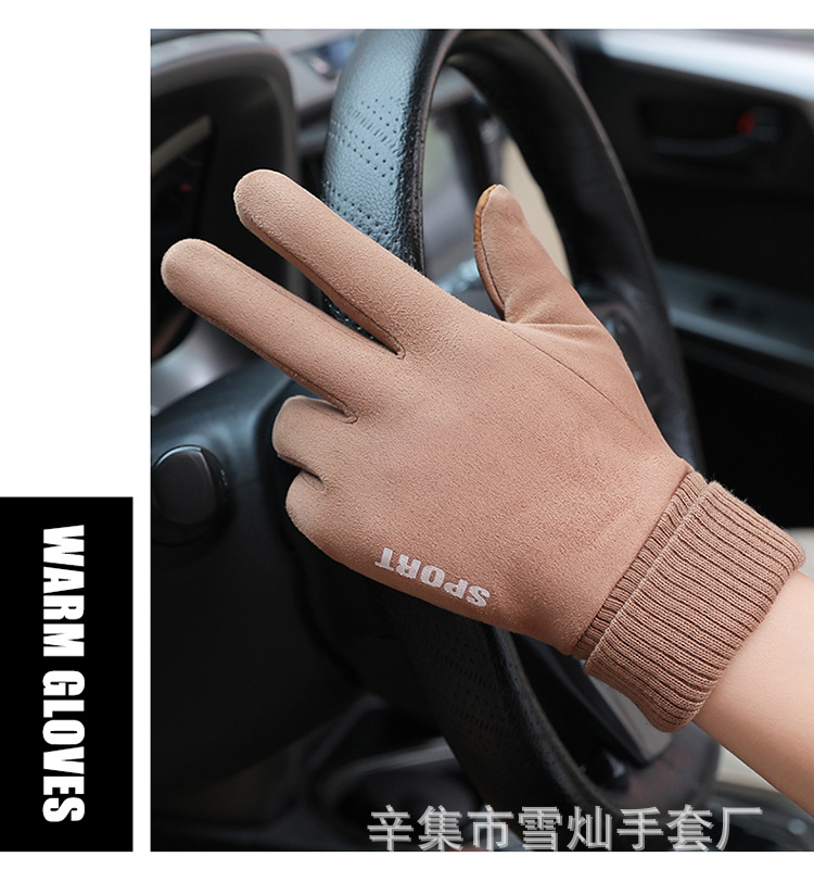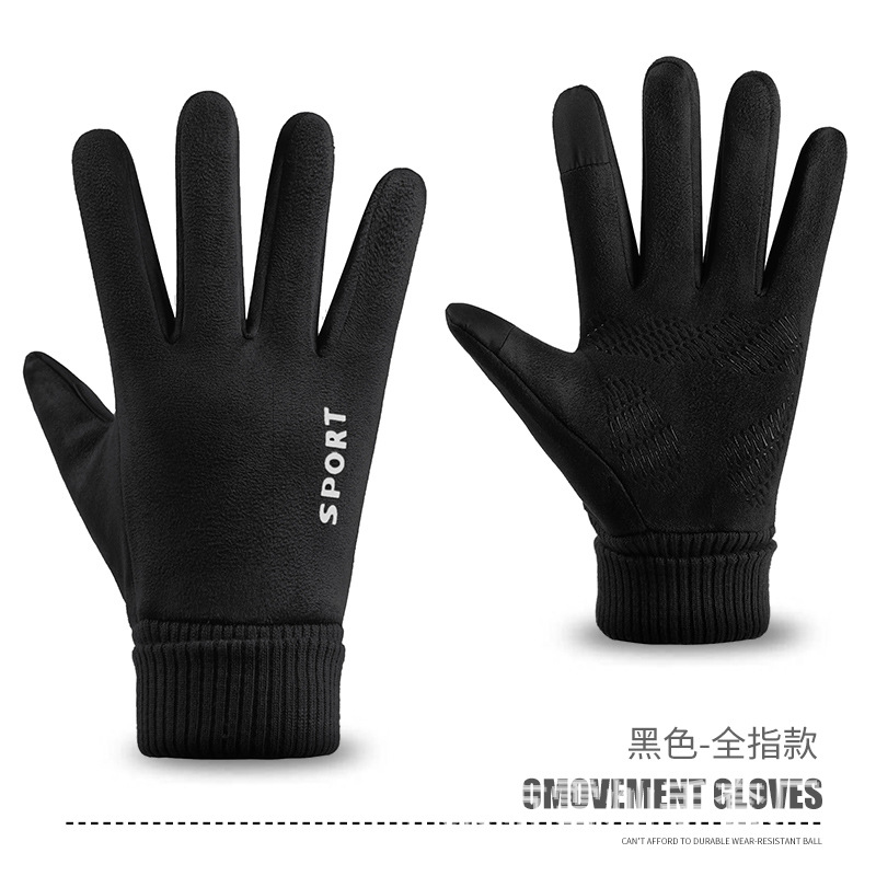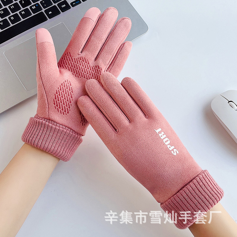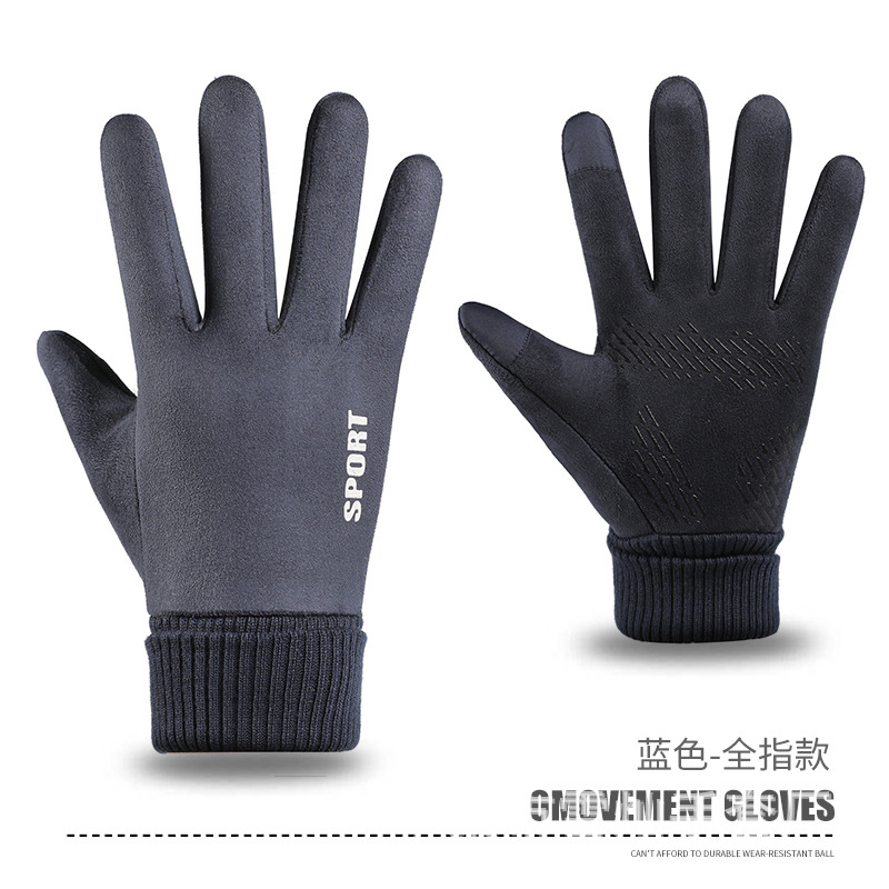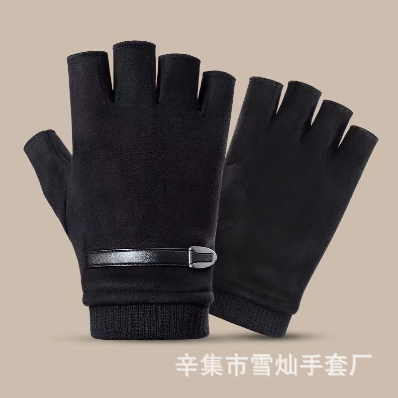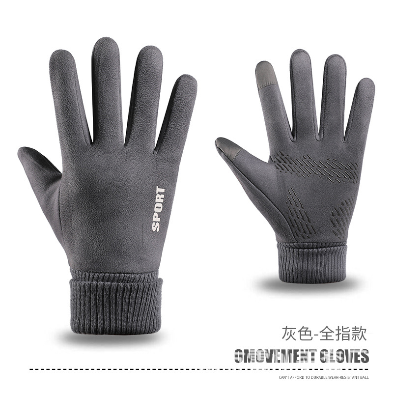 가을과 겨울에 따뜻한 터치 스크린 야외 사이클링을위한 남성과 여성을위한 스웨이드 벨벳 커프 커플 두 손가락 플러스 벨벳 두꺼운 장갑스토어 가기