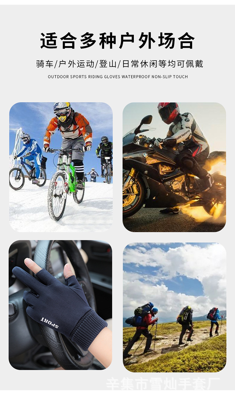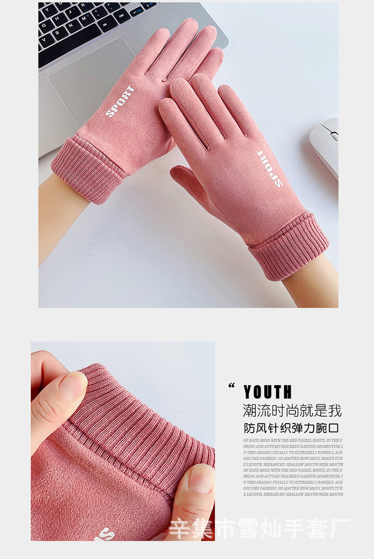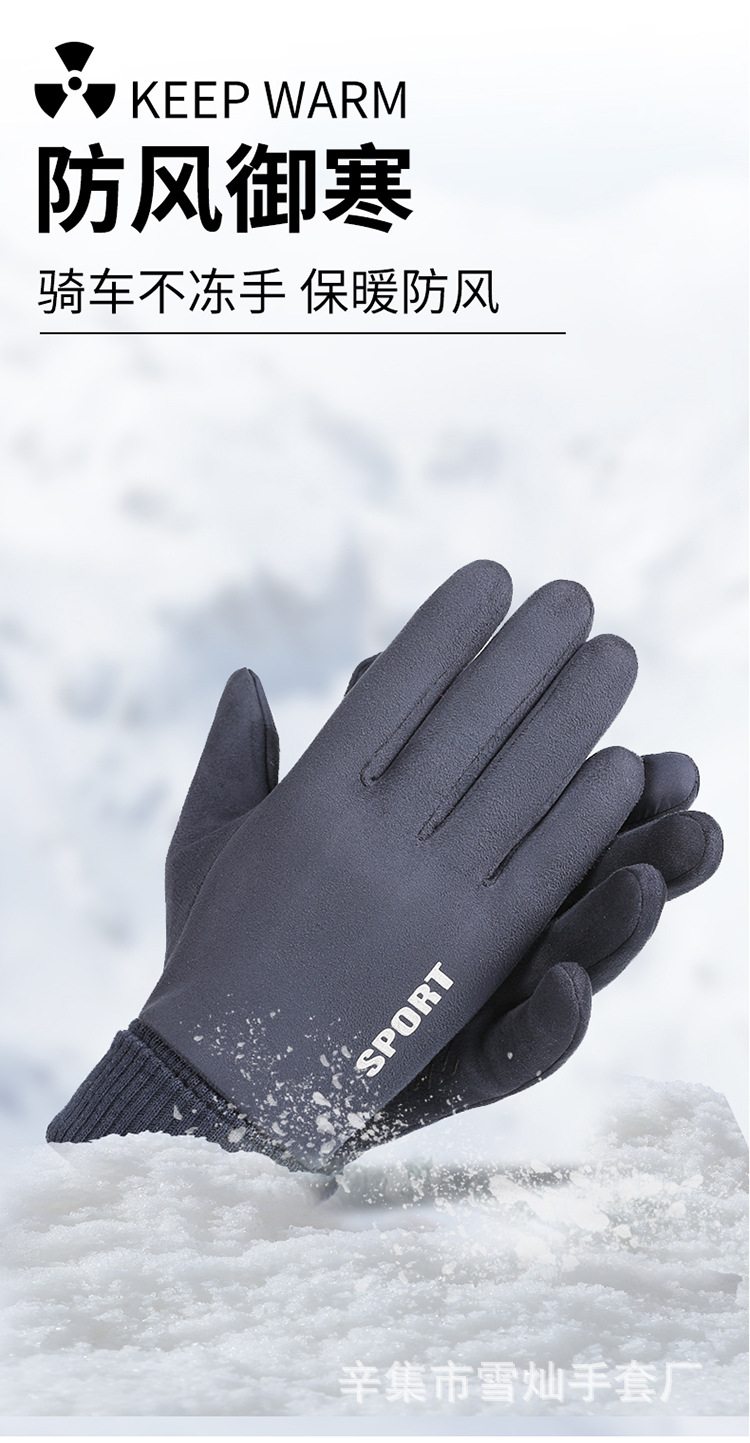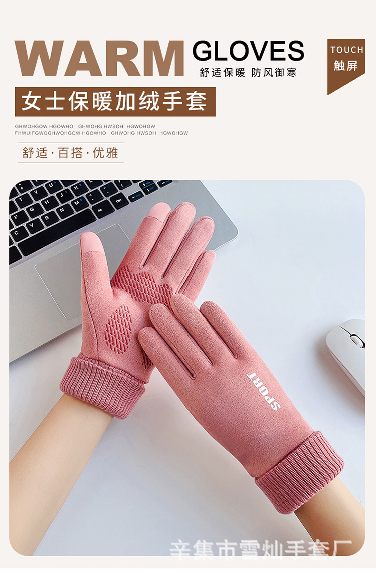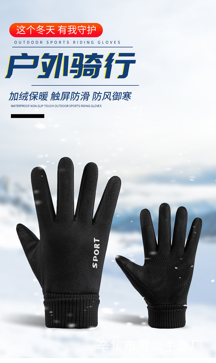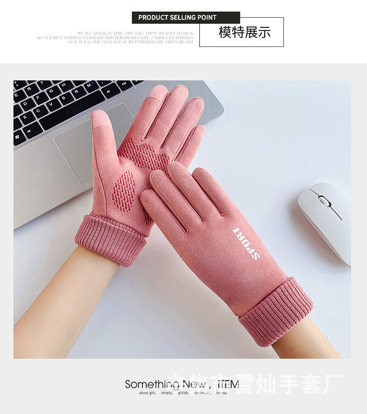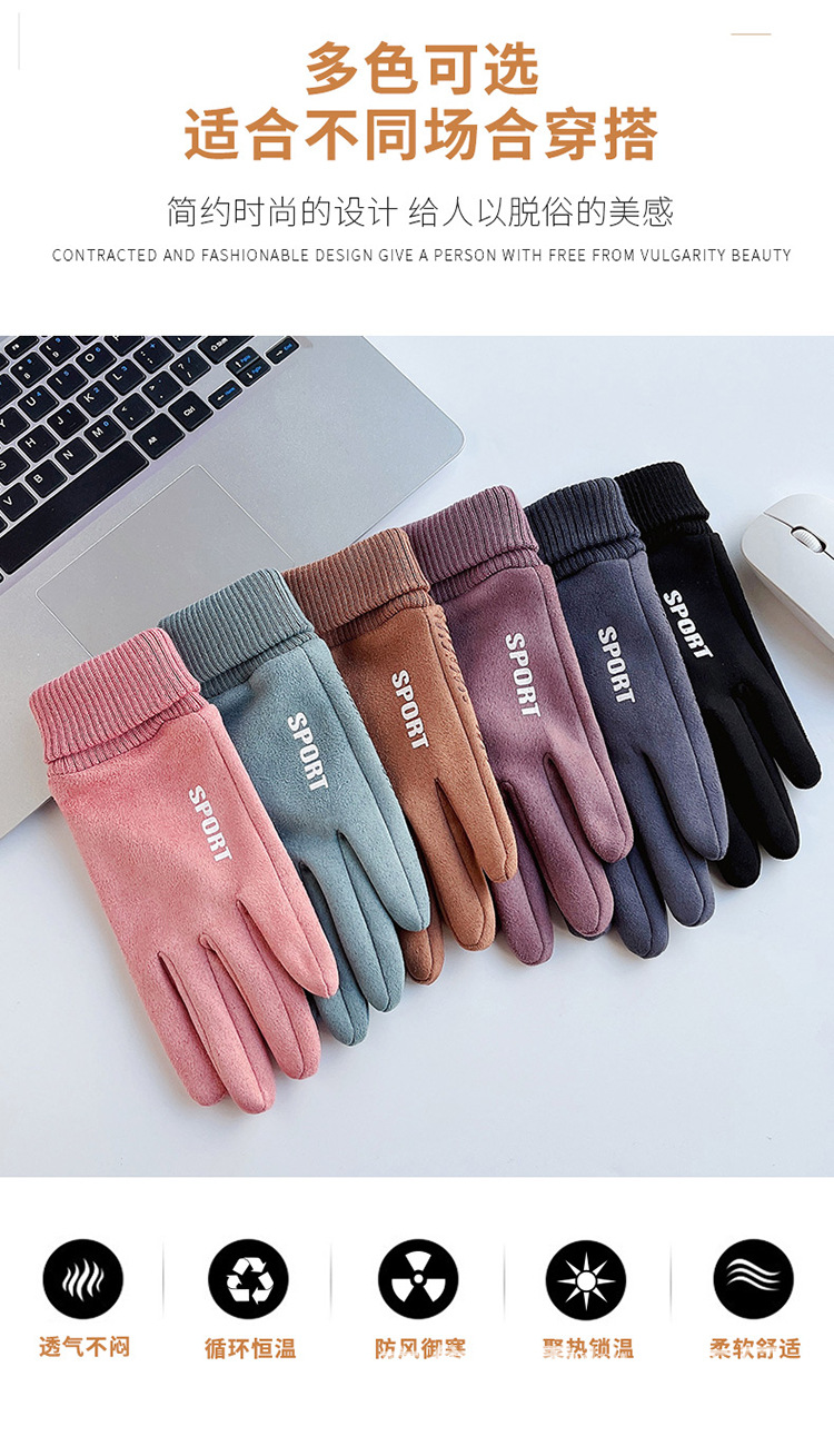 가을과 겨울에 따뜻한 터치 스크린 야외 사이클링을위한 남성과 여성을위한 스웨이드 벨벳 커프 커플 두 손가락 플러스 벨벳 두꺼운 장갑스토어 가기