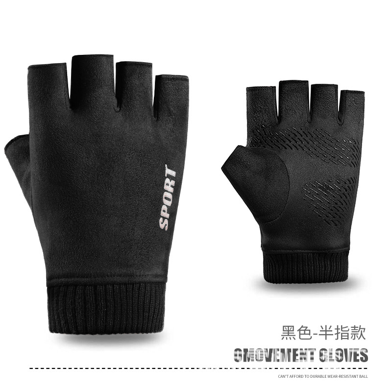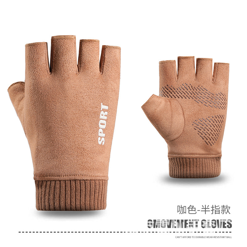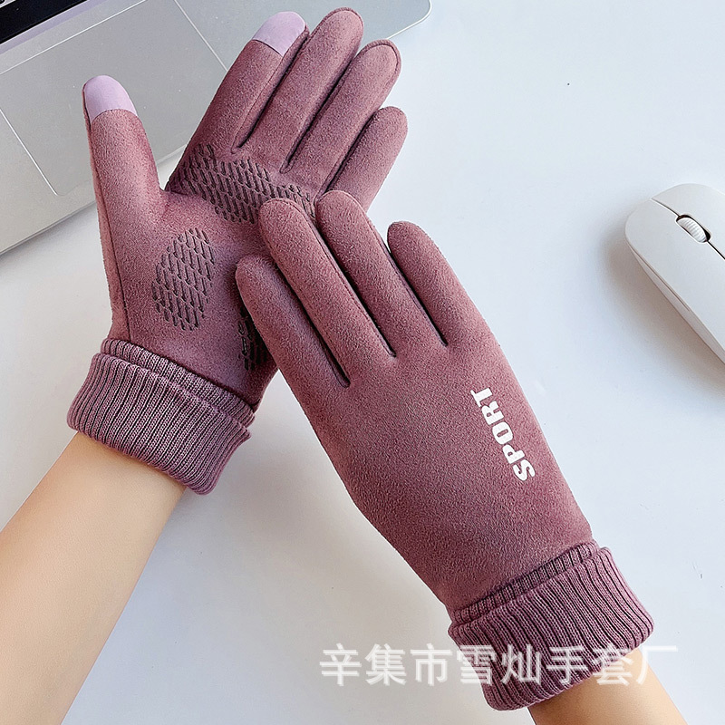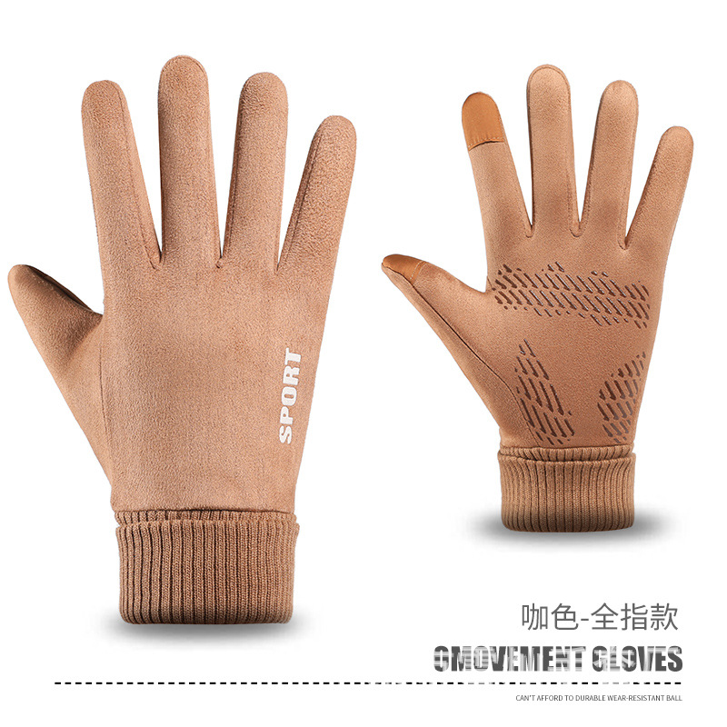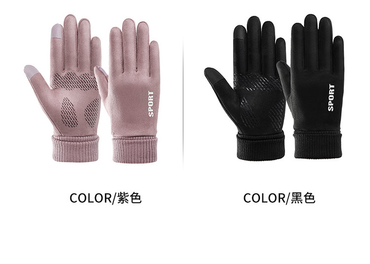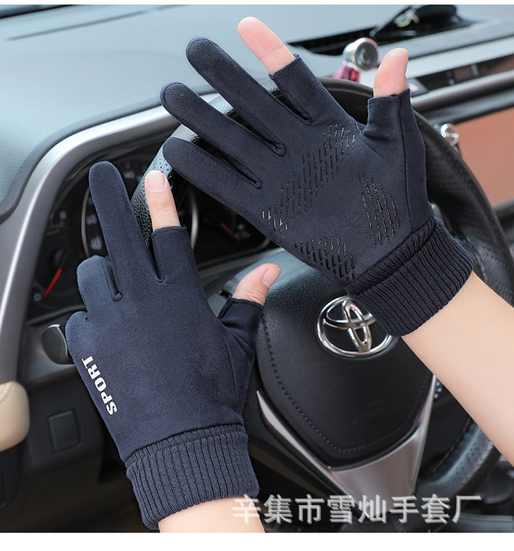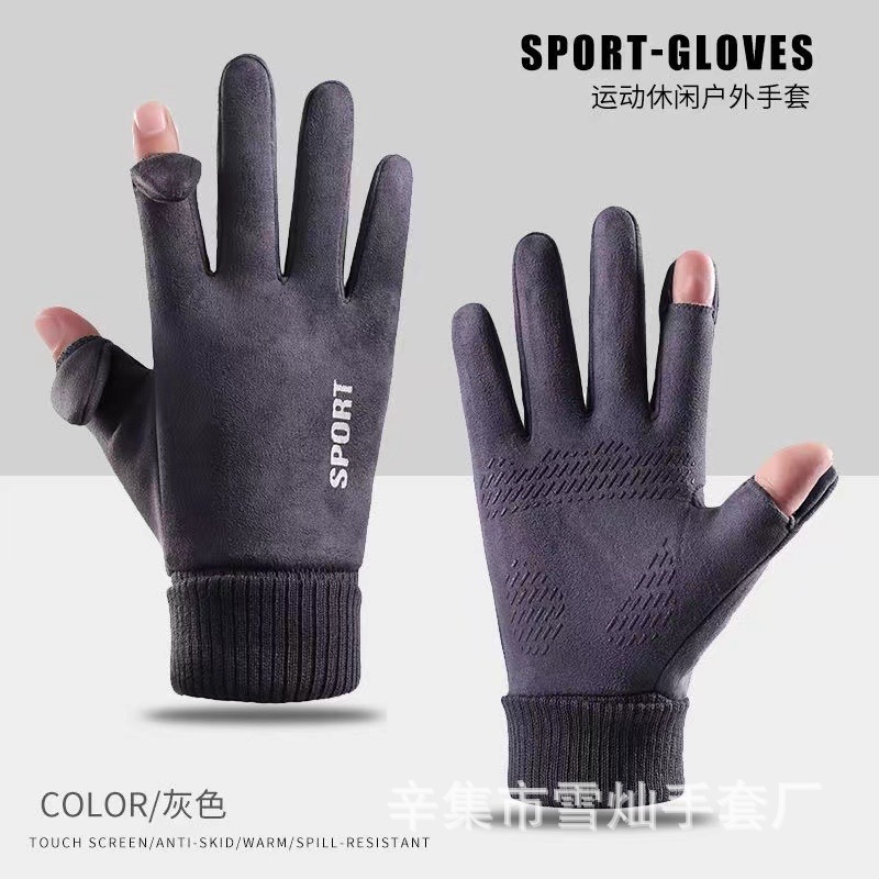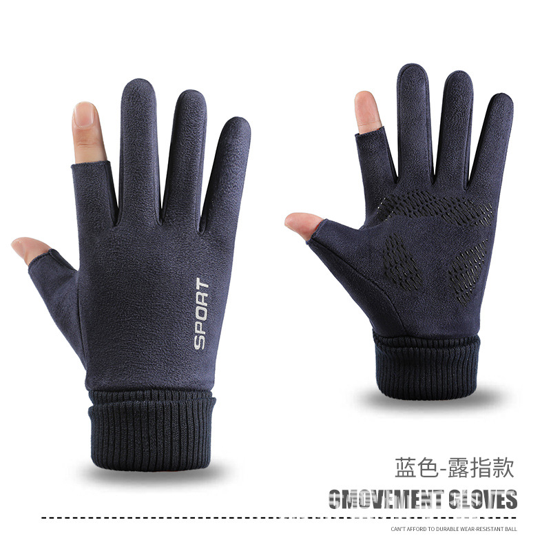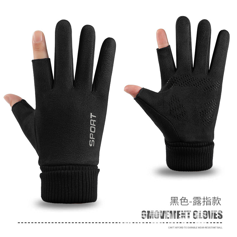 가을과 겨울에 따뜻한 터치 스크린 야외 사이클링을위한 남성과 여성을위한 스웨이드 벨벳 커프 커플 두 손가락 플러스 벨벳 두꺼운 장갑