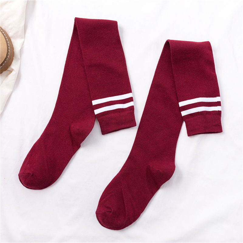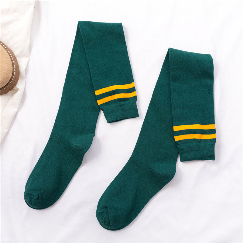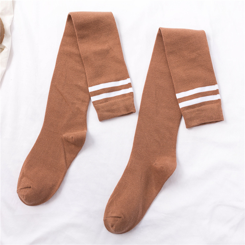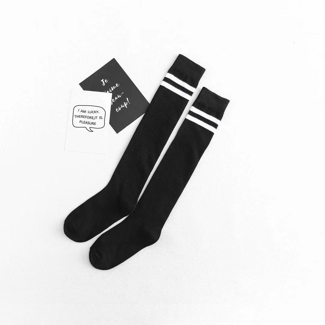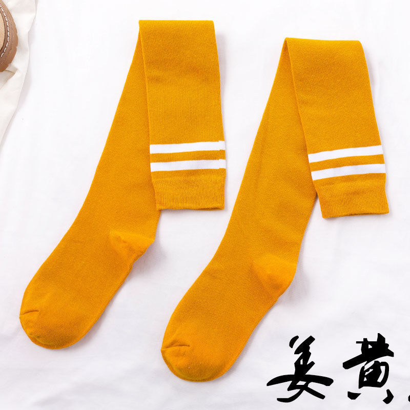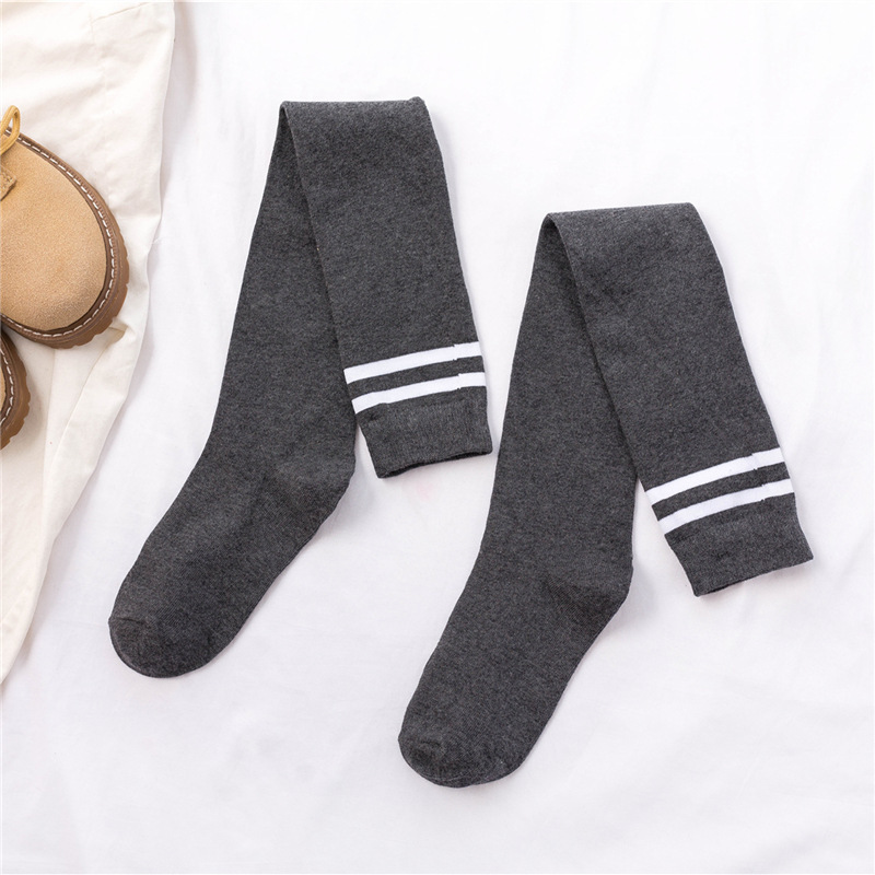 무릎 위 양말 여성용 봄과 가을 얇은 다리 스타킹 축구 양말 2 바 학업 스타일 긴 다리 양말