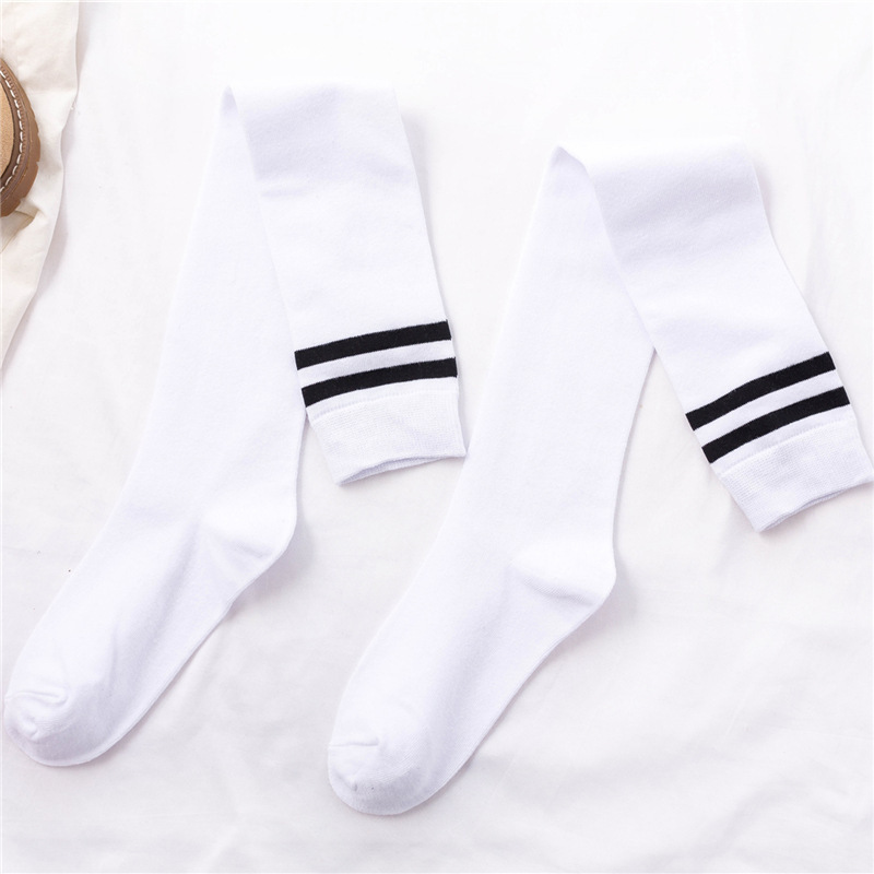무릎 위 양말 여성용 봄과 가을 얇은 다리 스타킹 축구 양말 2 바 학업 스타일 긴 다리 양말스토어 가기