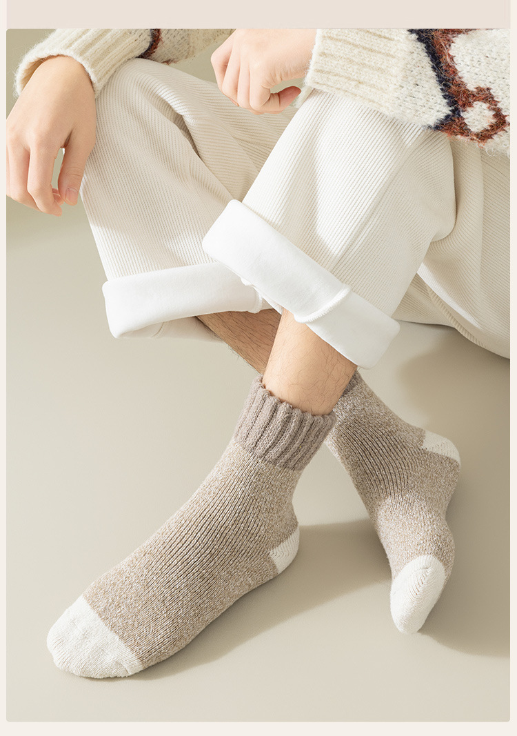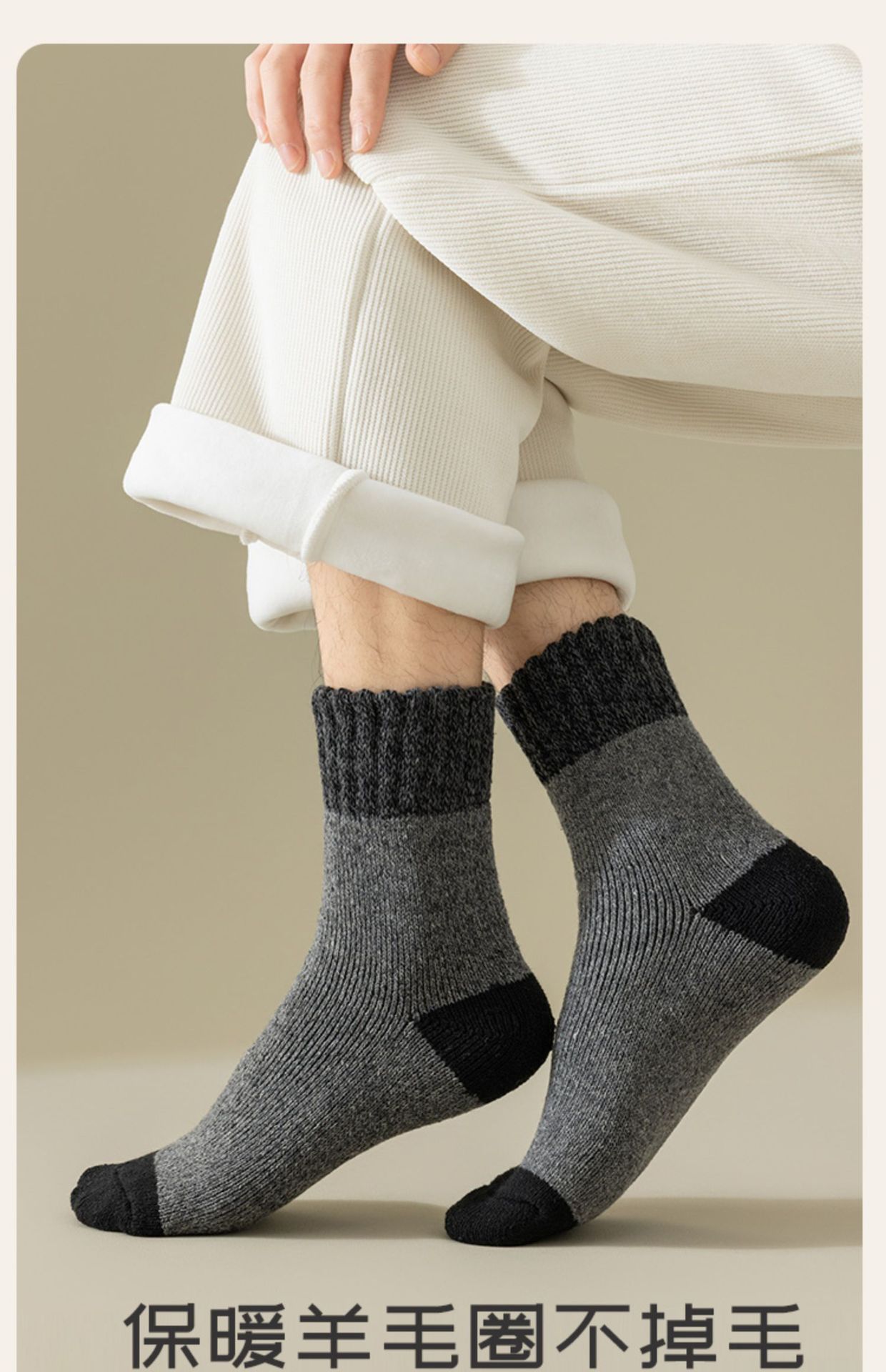남성용 양모 양말 두꺼운 양말 남성용 겨울용 벨벳 초두꺼운 보온 양말 중간 길이 양말 동북 겨울용 캐시미어 양말스토어 가기