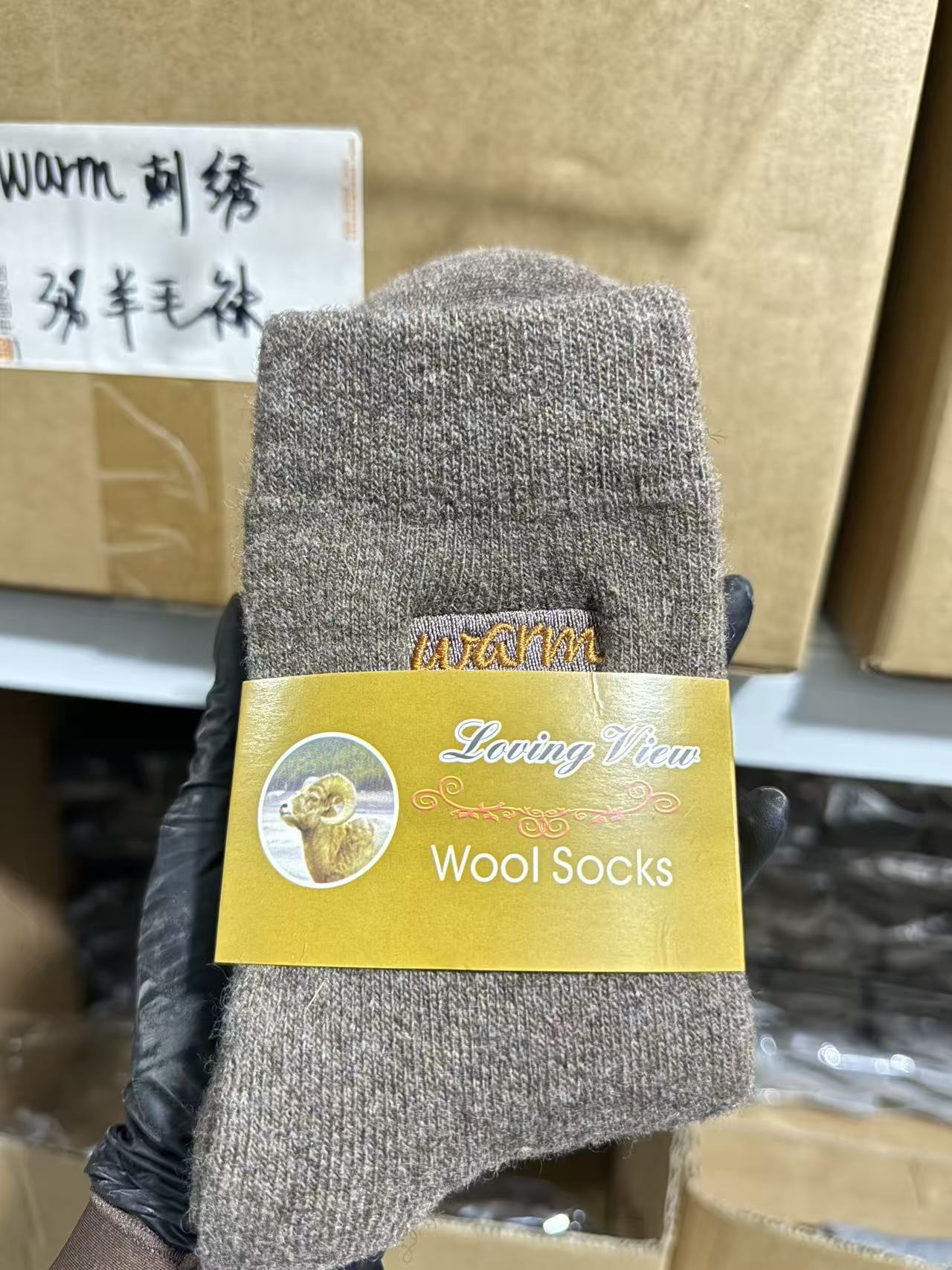• 따뜻한 자수 울 30% 남성용 양말 [라이트 커피]