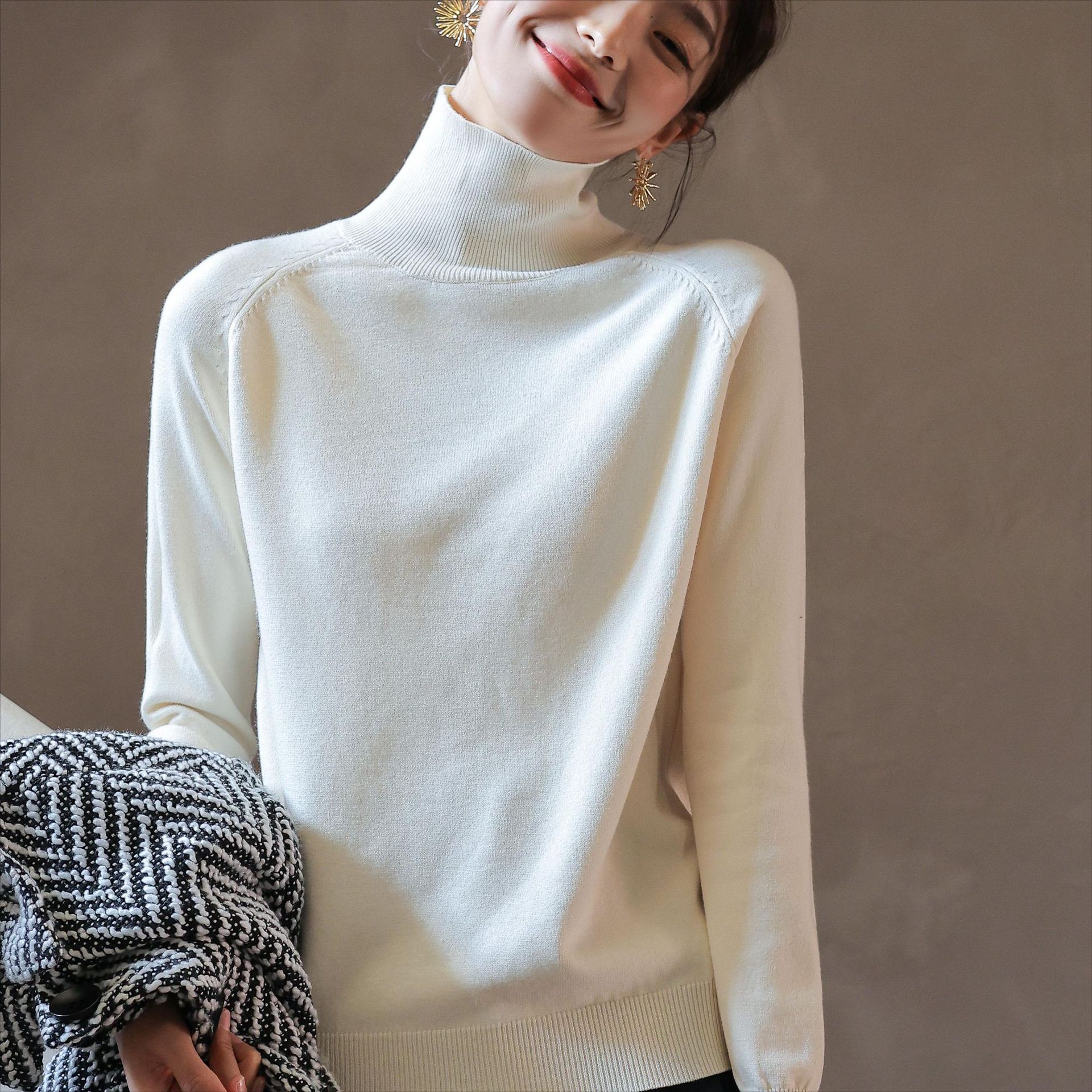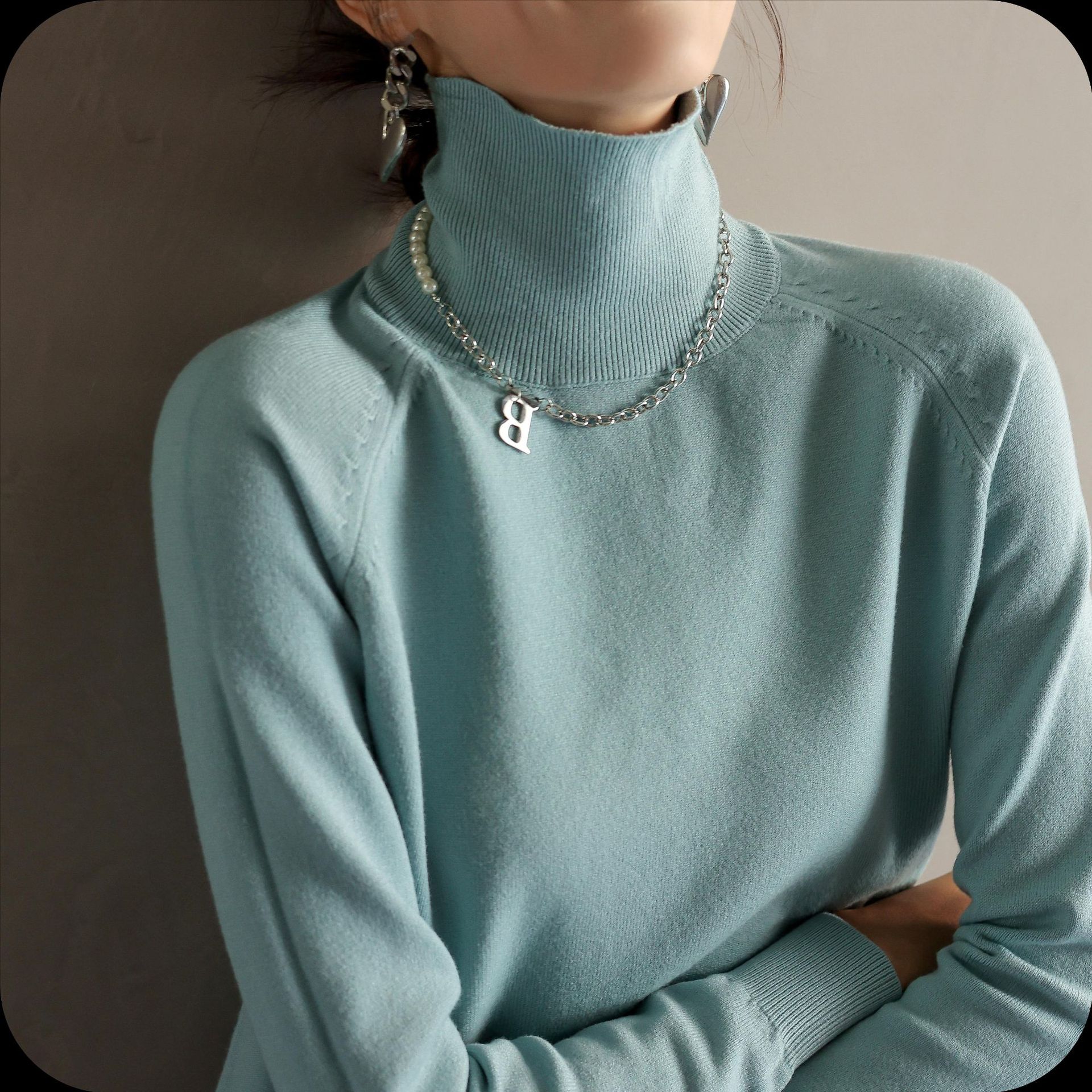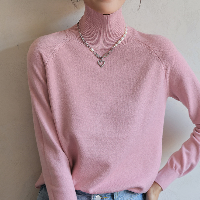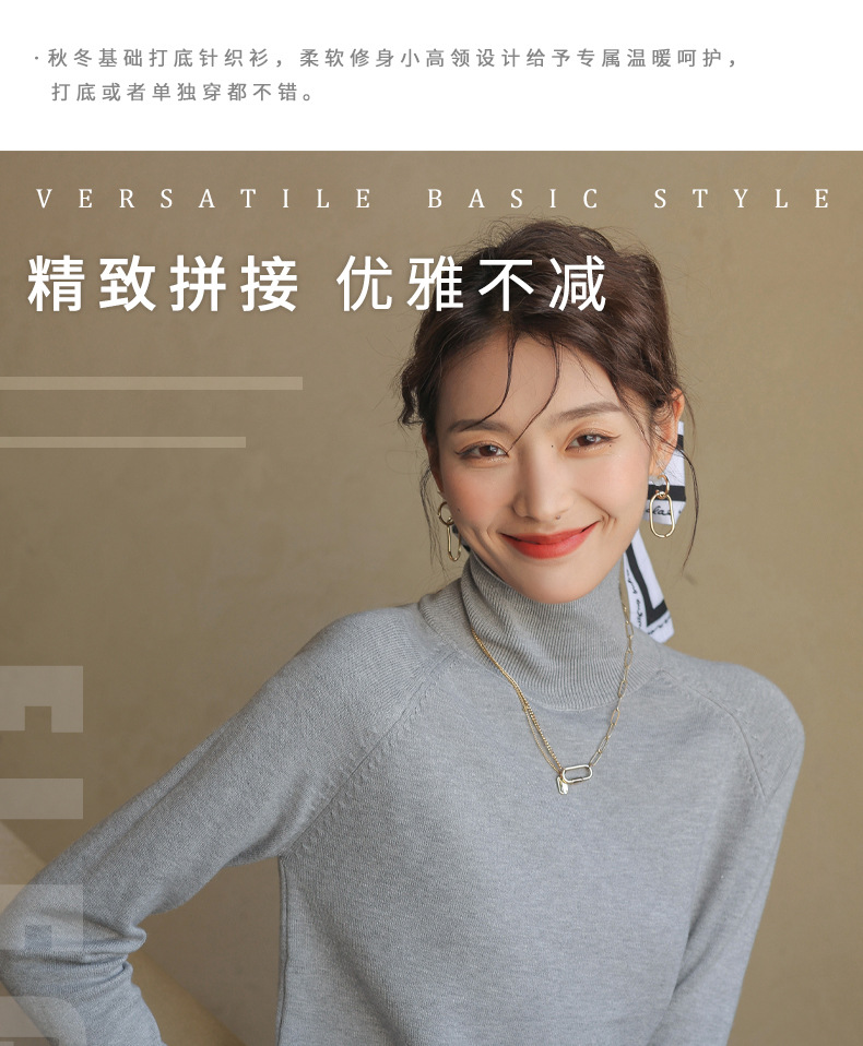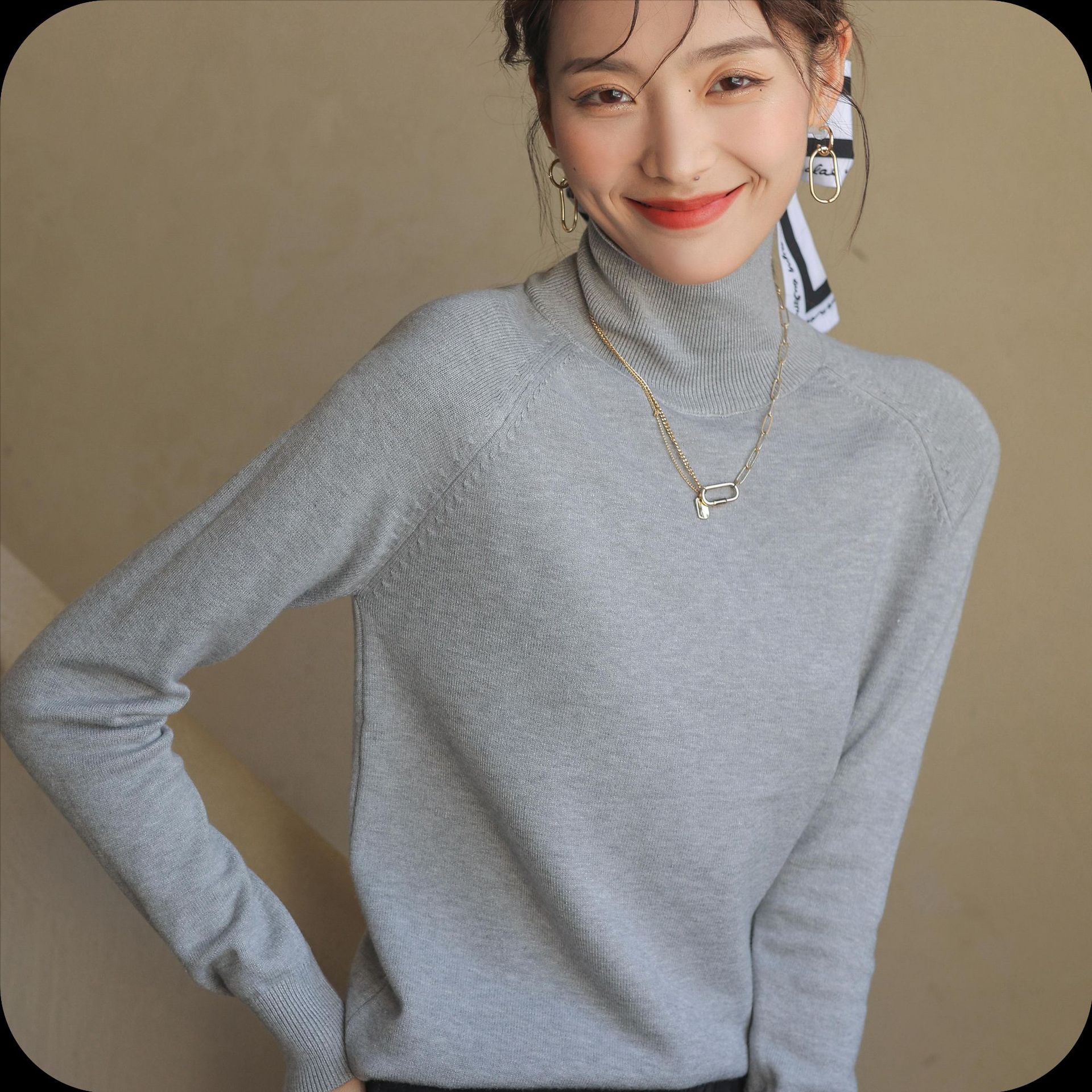 하프 하이 칼라 스웨터 올 매치 슬림 핏 봄 가을과 겨울 여성의 2024 새로운 내부 긴 소매베이스 셔츠 스타일 탑스토어 가기
