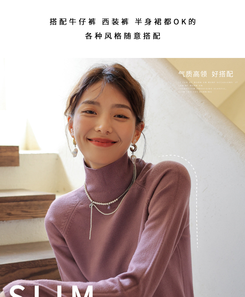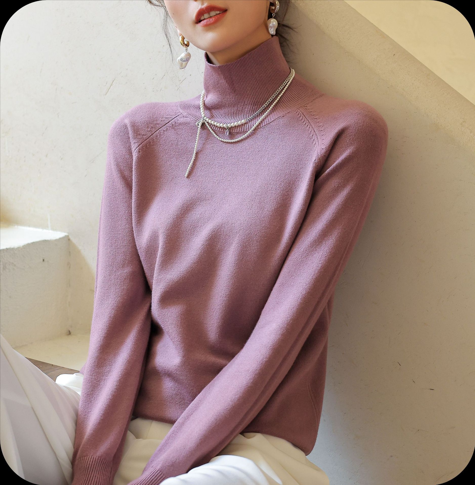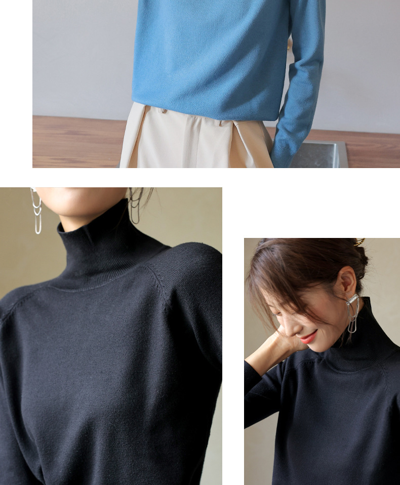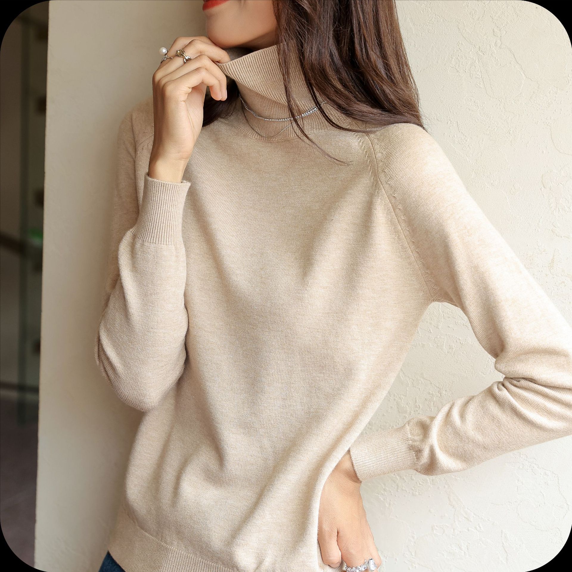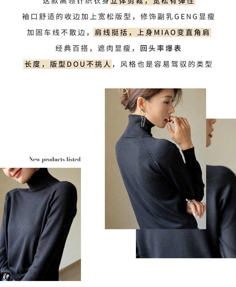 하프 하이 칼라 스웨터 올 매치 슬림 핏 봄 가을과 겨울 여성의 2024 새로운 내부 긴 소매베이스 셔츠 스타일 탑스토어 가기
