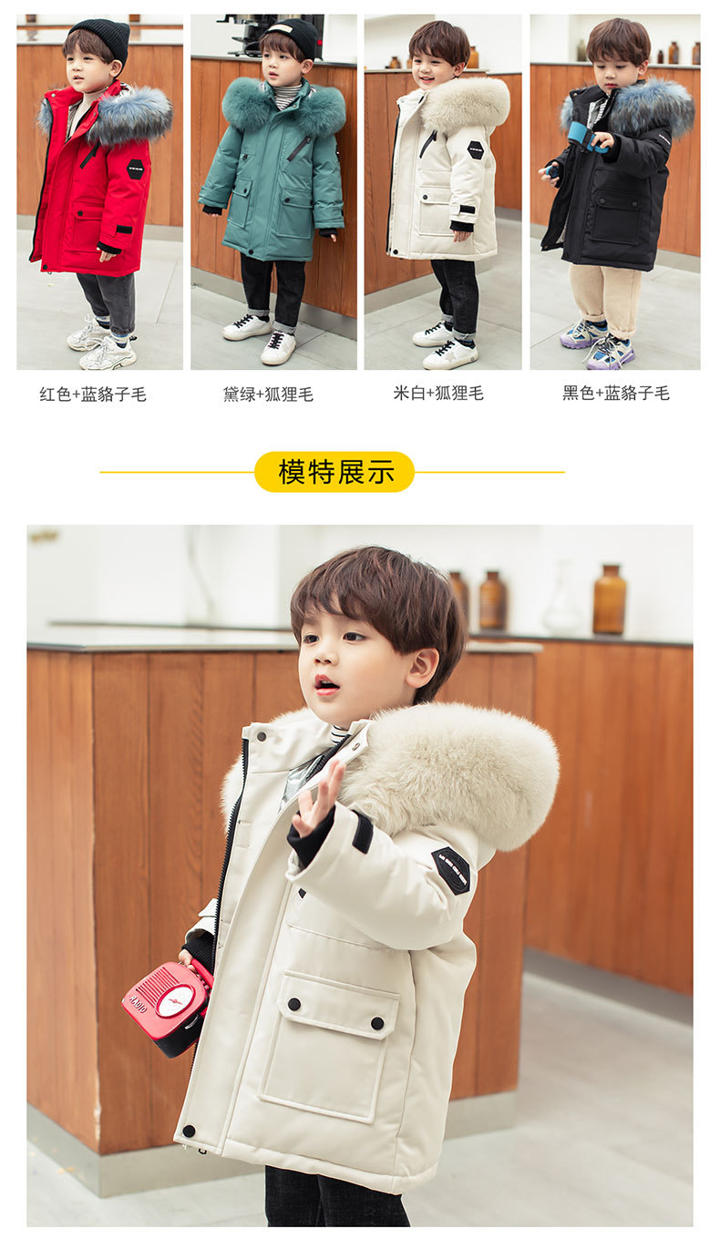 아동용 다운 재킷 소년 중간 길이 두꺼운 흰색 오리 다운 재킷 어린이 2024 새로운 스타일 아기 겨울 의류스토어 가기