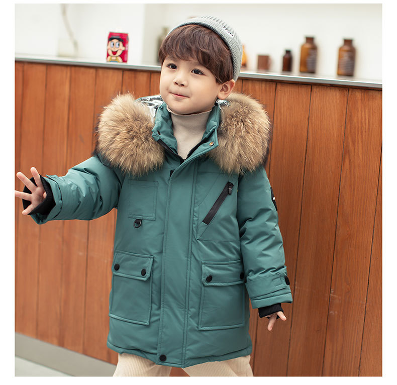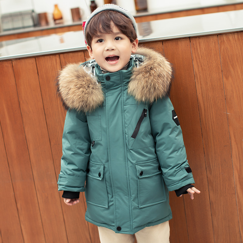아동용 다운 재킷 소년 중간 길이 두꺼운 흰색 오리 다운 재킷 어린이 2024 새로운 스타일 아기 겨울 의류