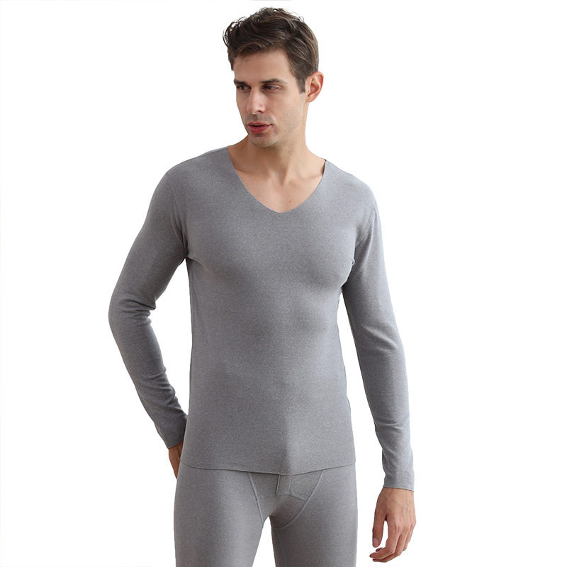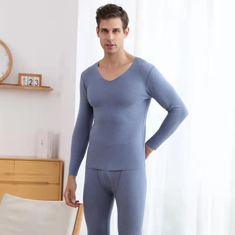 새로운 남자의 V-넥 일정한 온도 속옷 AB 얼굴 솔질 드 벨벳 따뜻한 세트 여자의 2 색 원활한 가을 옷과 긴 존스