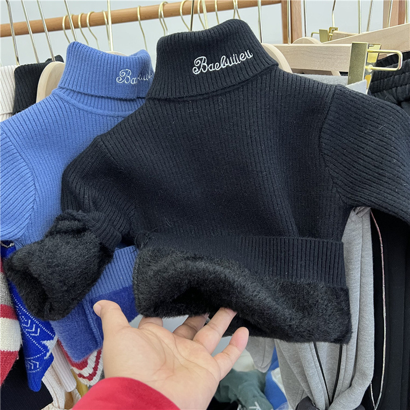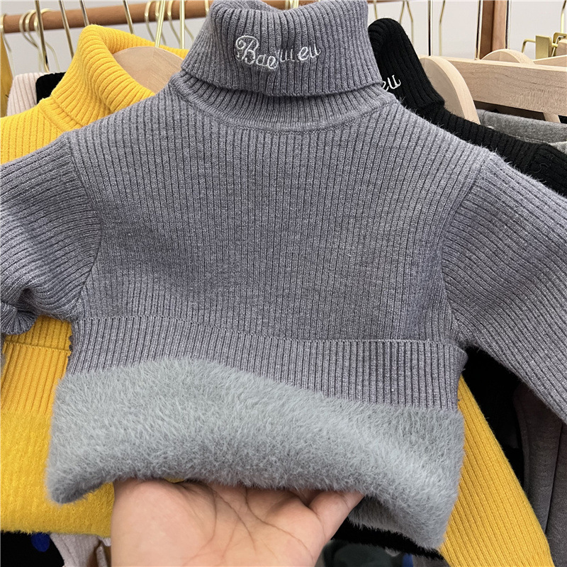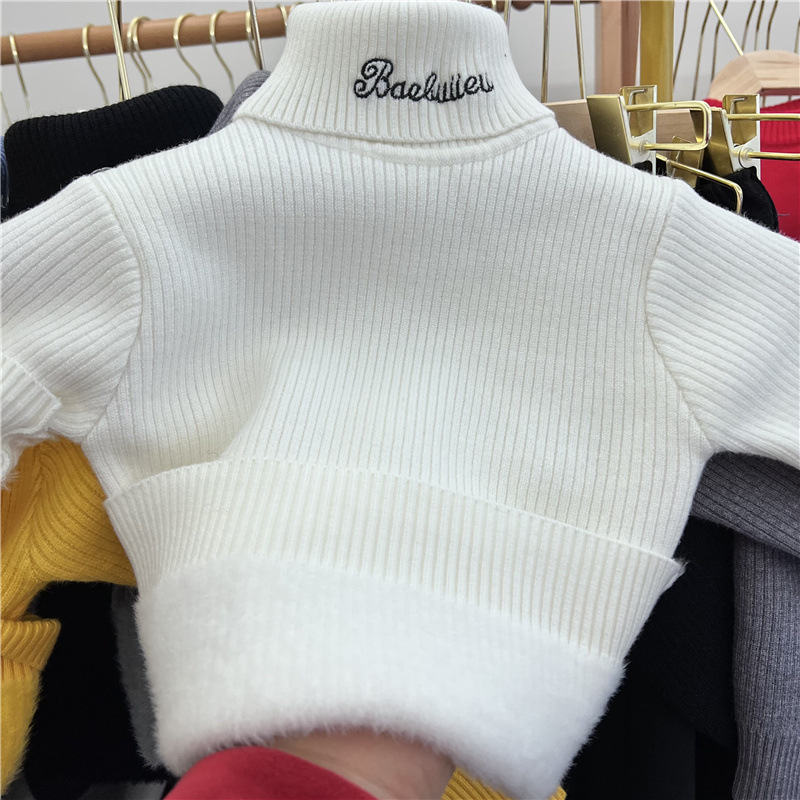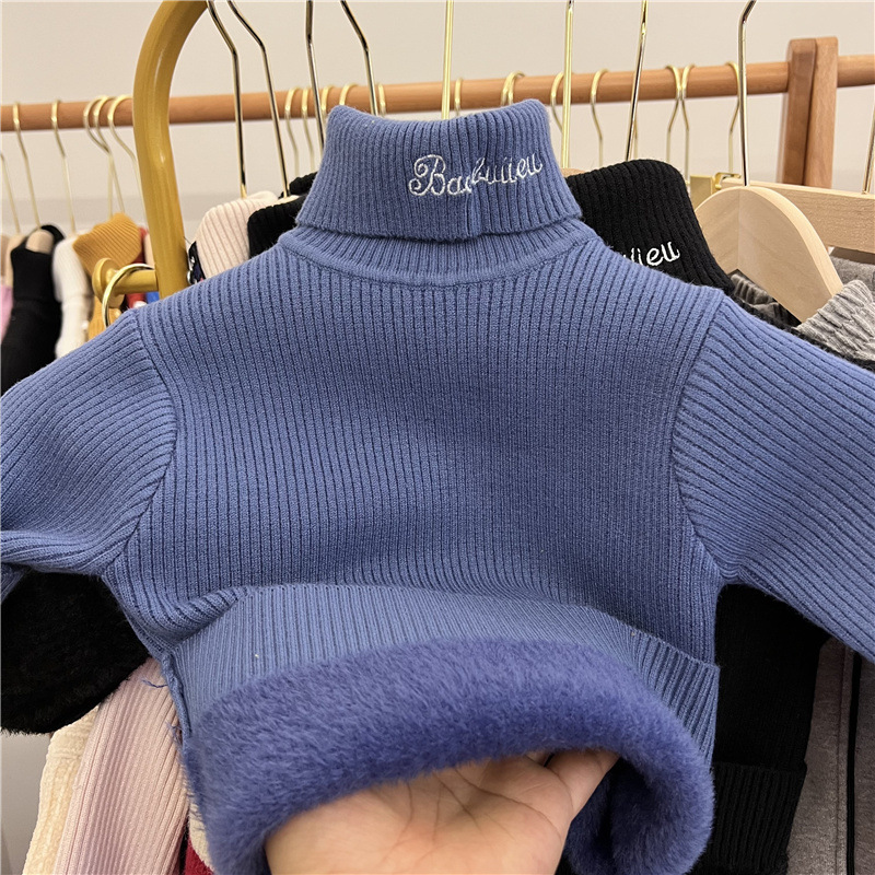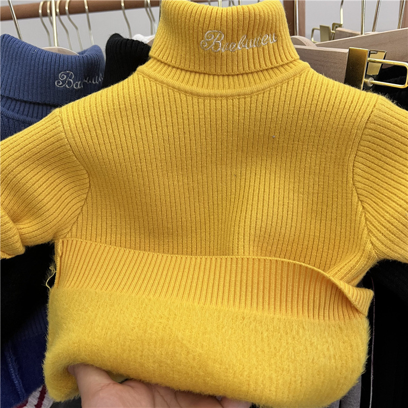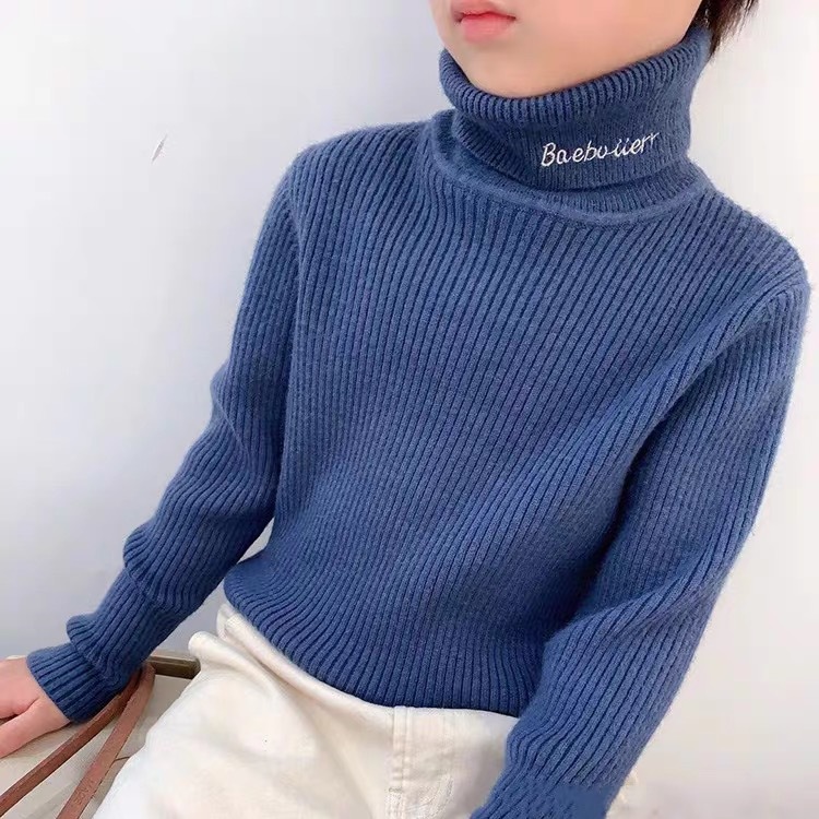 새로운 아동복 소년 소녀 스웨터 어린이 아기 바닥 스웨터 서양식 터틀넥 한국식 따뜻한 탑 자수스토어 가기