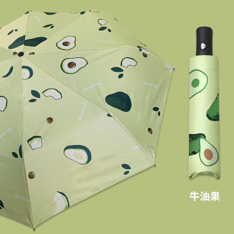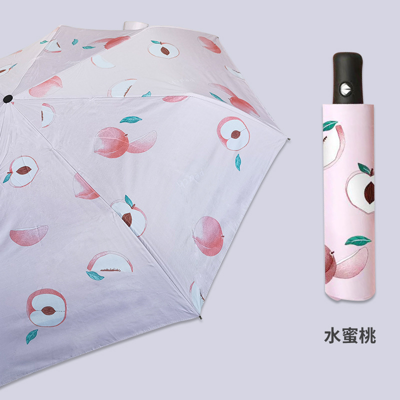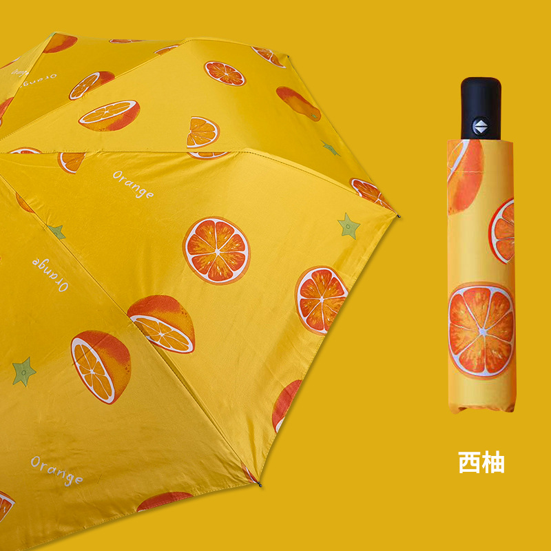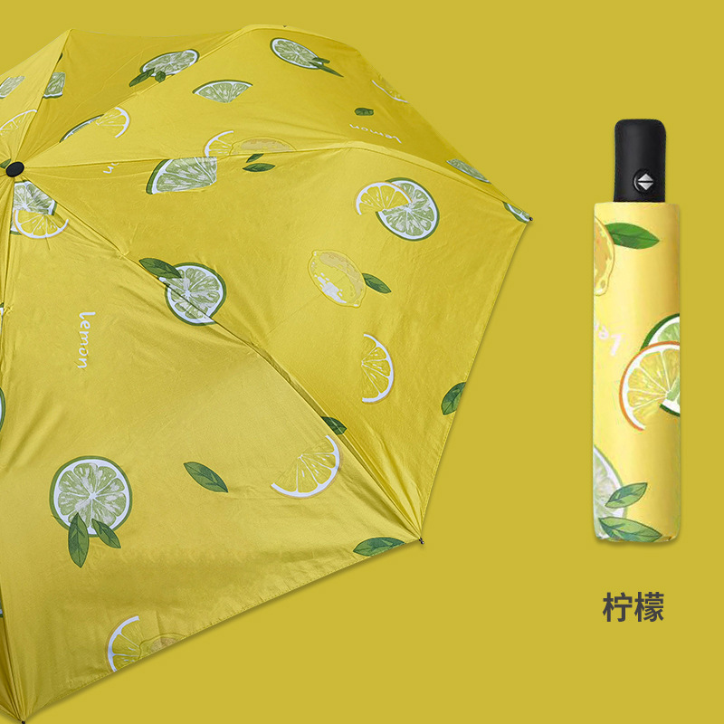 여성용 여름 미니 자동 우산, 원터치 개폐, 자외선 차단, 블랙코팅, 과일 디자인, 학생용 우산, 과일 요소 포함