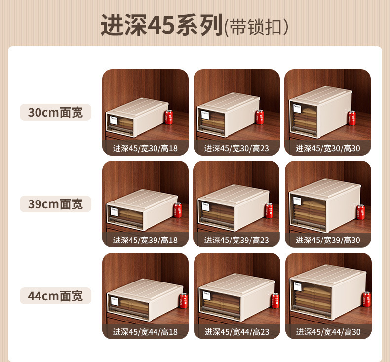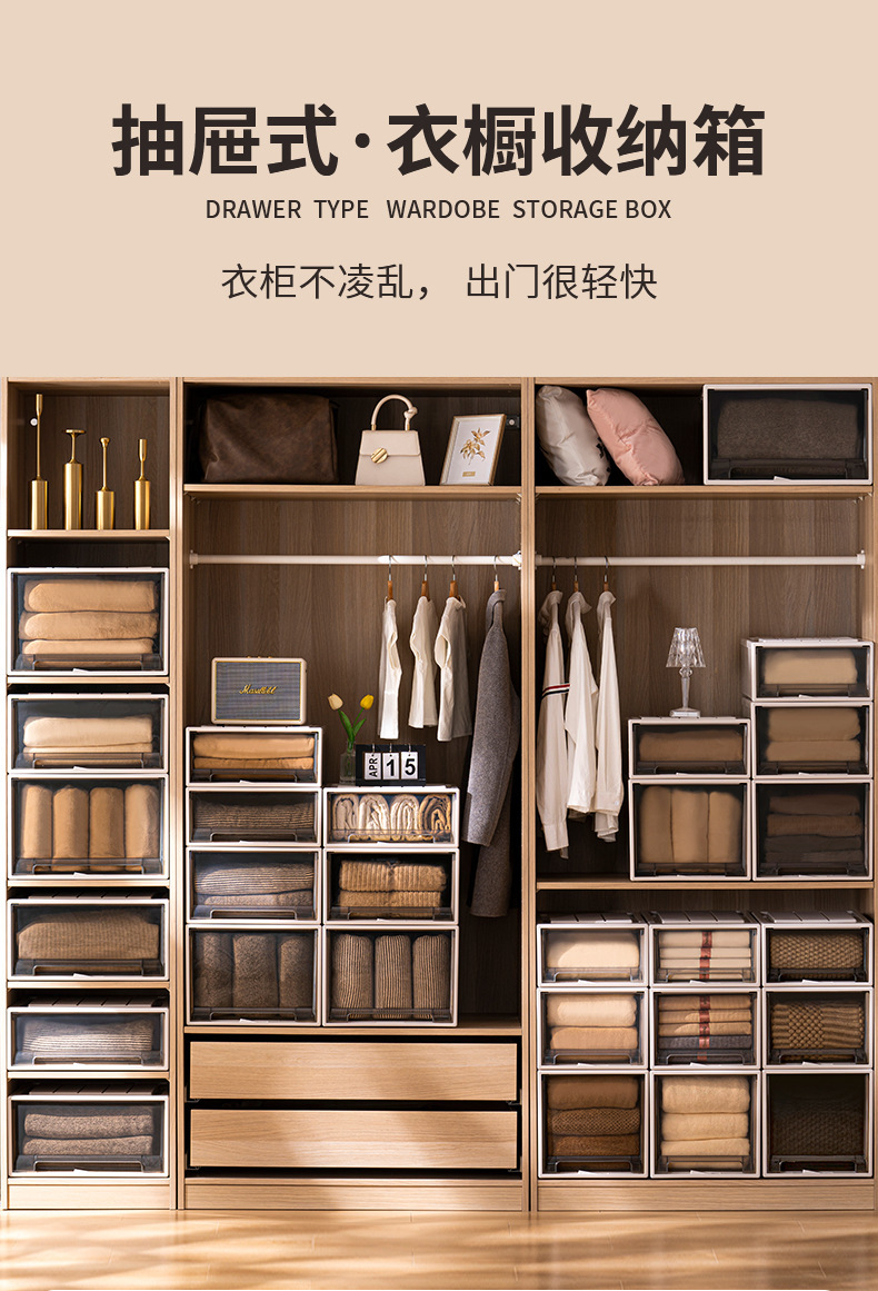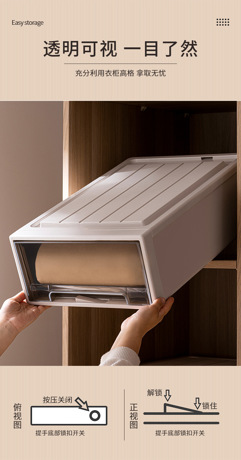서랍형 수납함 플라스틱 투명 옷장 수납함 정리함 옷 수납장 잠금장치 포함