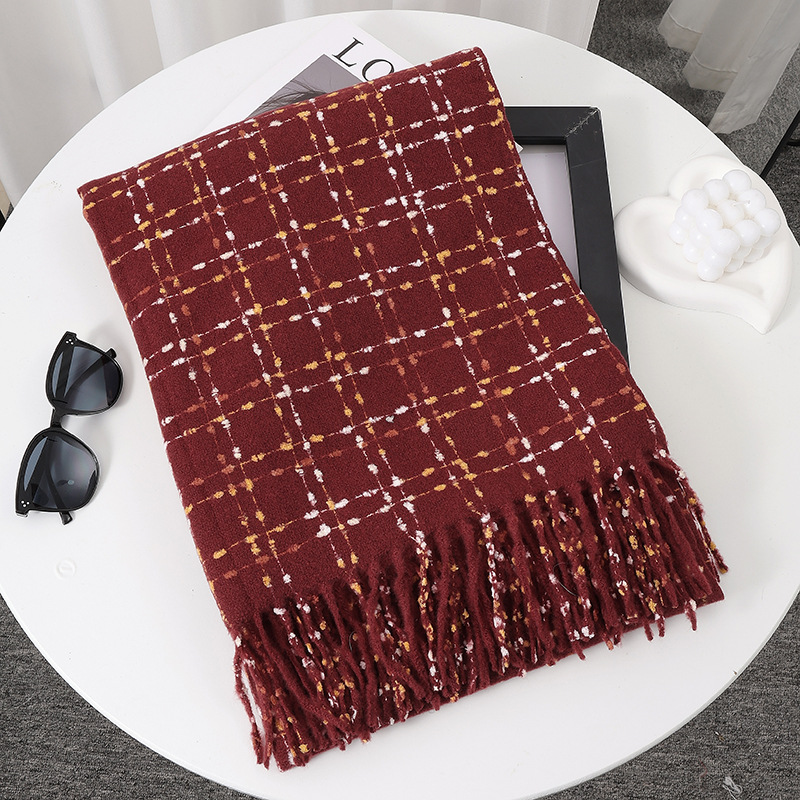 새로운 모조 캐시미어 체크무늬 스카프 가을 겨울 남녀 공용 한국 스타일 분위기 있는 모헤어 목도리 숄 도매 및 배송