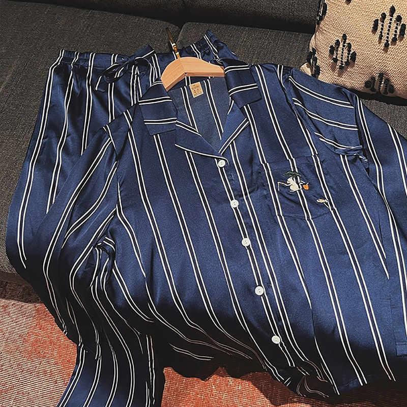 새끼 고양이 낚시 실크 웨딩 커플 잠옷 여자의 여름과 여름 얇은 얼음 실크 간단한 봄과 가을 가정 의류 남자의 플러스 사이즈스토어 가기