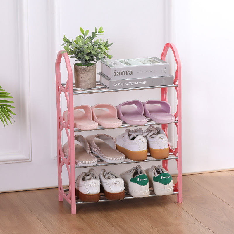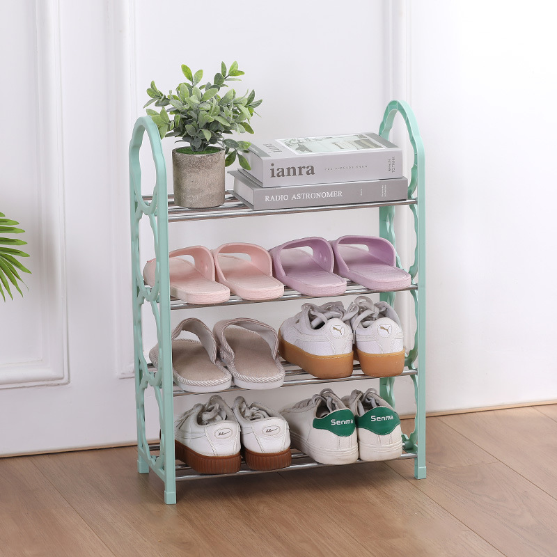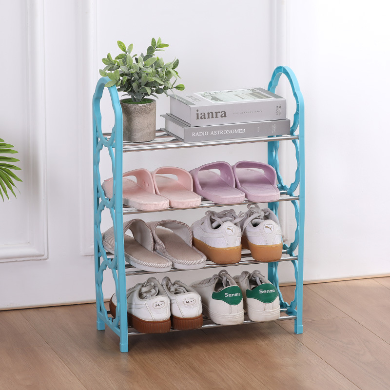 스테인리스 스틸 수납 선반 4단 간편 신발장 가정용 조립식 분리형 학생 기숙사 다기능 수납 신발장