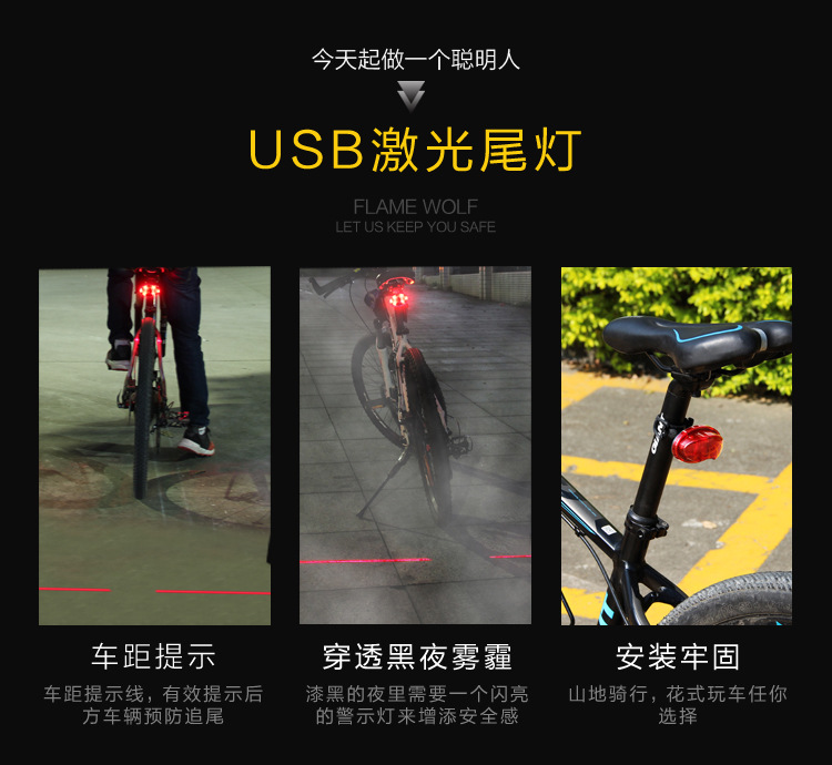 도매 자전거 후미등 LED 고휘도 레이저 후미등 방향 지시등 산악 자전거 야간 라이딩 장비 해외 전용 공급스토어 가기