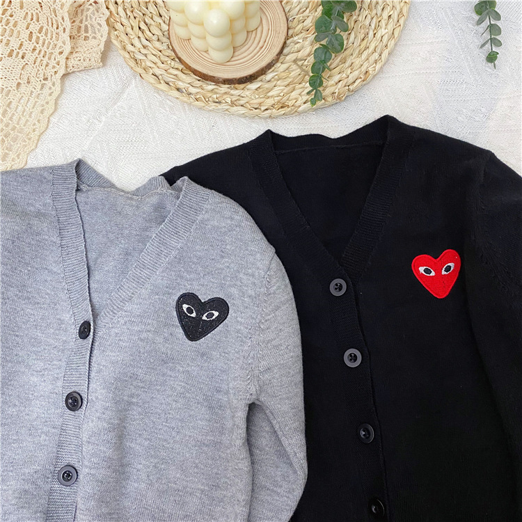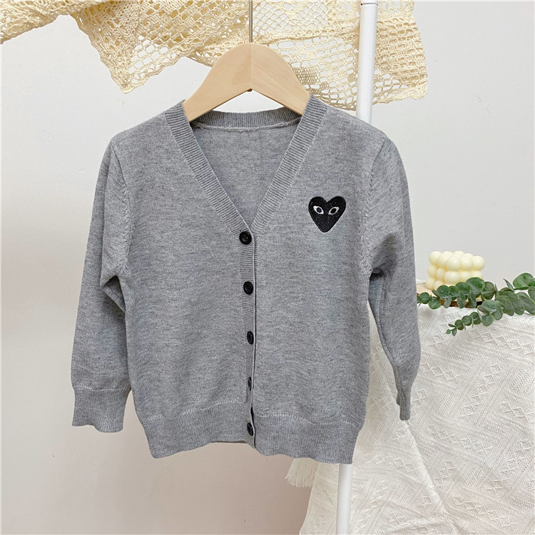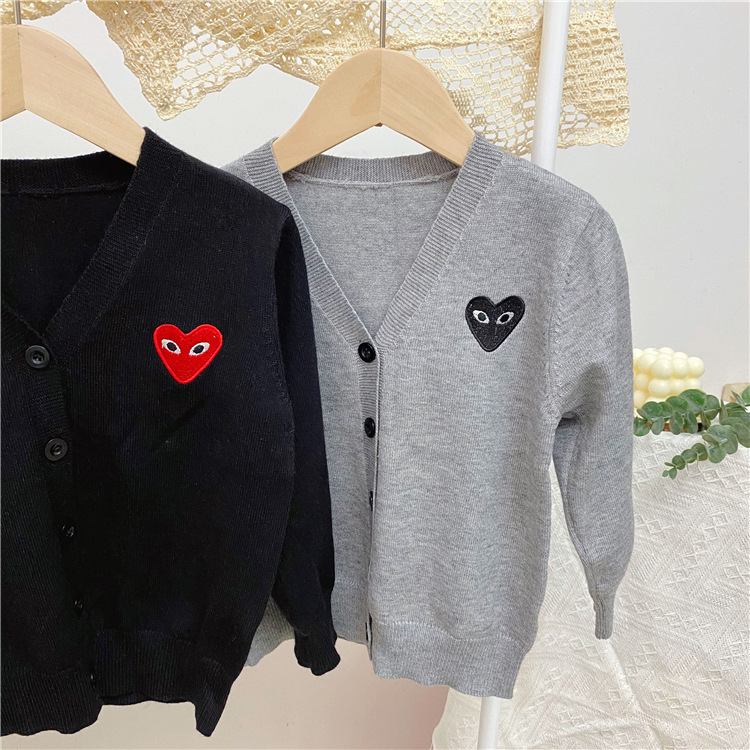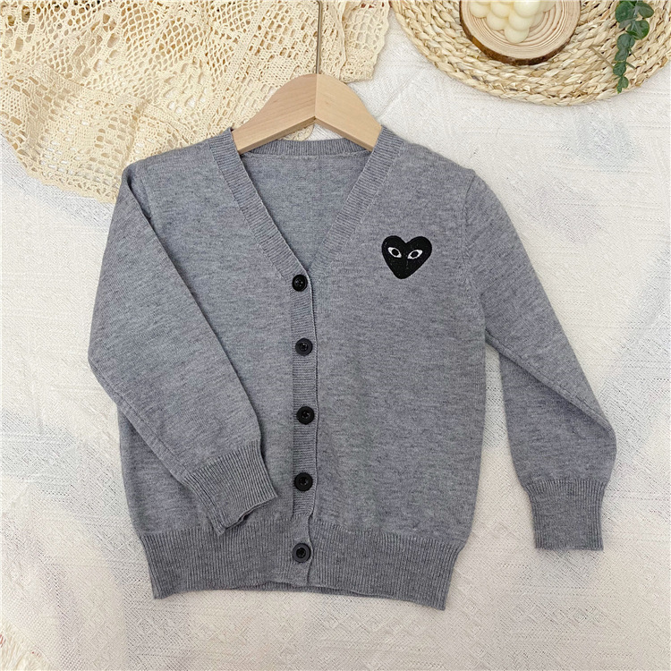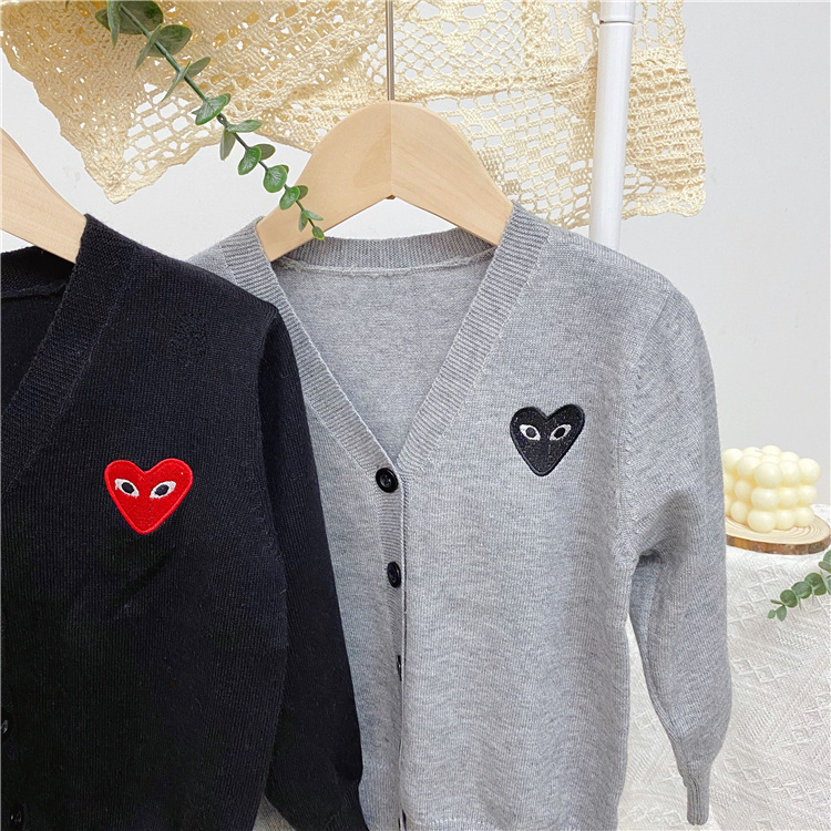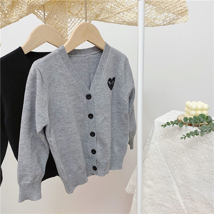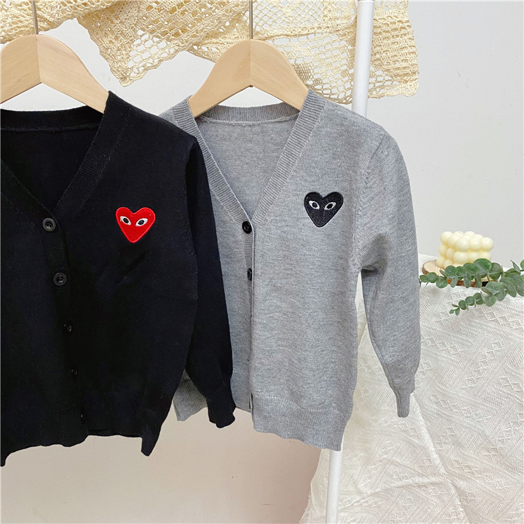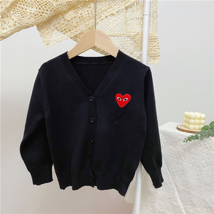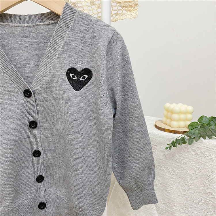 2025 봄/가을 남아 여아 V넥 하트 니트 가디건 긴팔 단추형 스몰 코트 상의 1개 도매스토어 가기