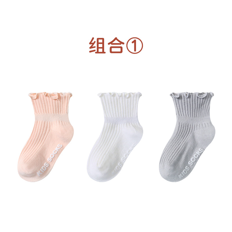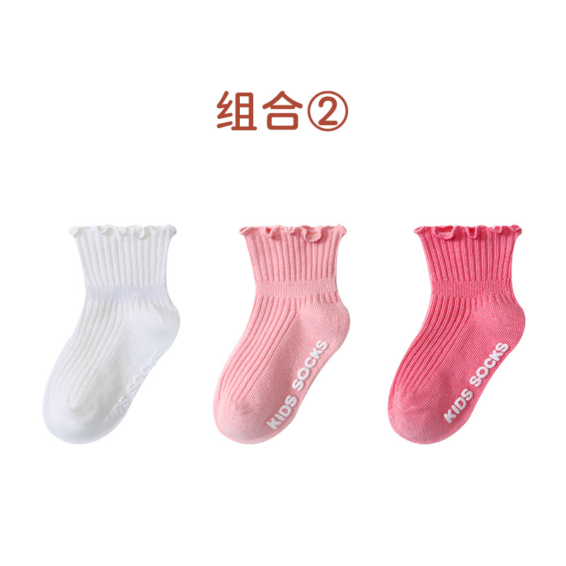 2021 가을과 겨울 어린이 일반 컬링 소나무 귀 가장자리 아기 어린이 바닥 양말 공주 양말 3 켤레
