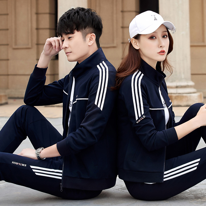 커플 스포츠웨어 세트 여성 가을 의류 유행 세로 칼라 가디건 3 종 세트 슬림핏 슬리밍 캐주얼 세트 여성 가을 의류스토어 가기