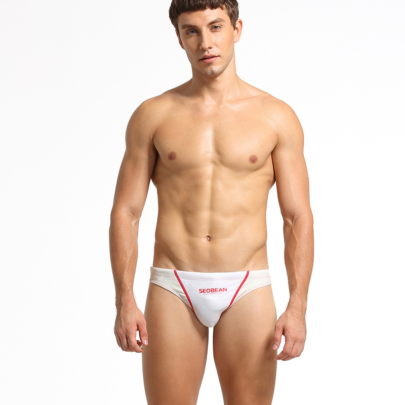 도매 SEOBEAN 남성 수영복 바지 섹시한 패션 낮은 허리 수영복 수영 트렁크 색상 일치 삼각형 수영 트렁크